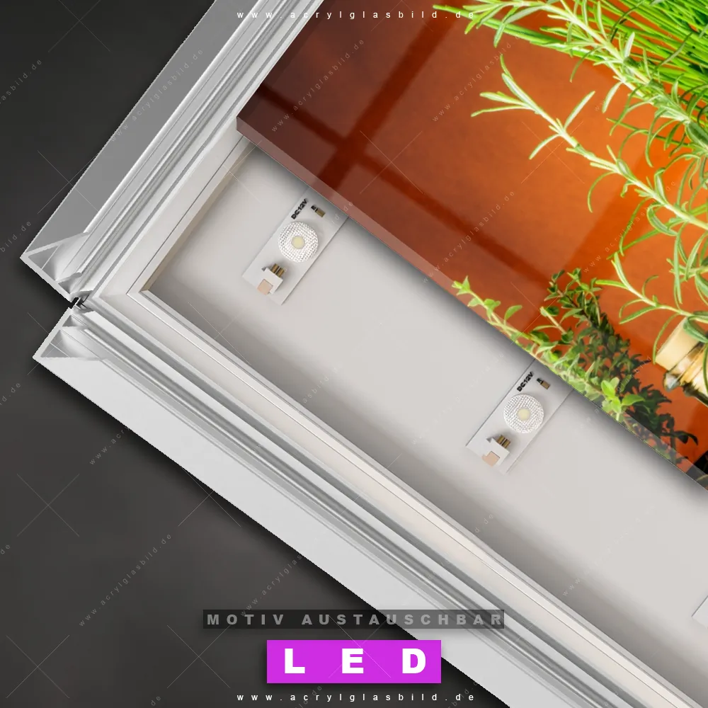Wer braucht schon langweilige Wände, wenn man sie mit unserem LED Acrylglasbild Canvalight® DIA Gesunde Kräuter aufpeppen kann? Dank der genialen LED-Ausleuchtung wirst du in Bar - Gastronomie, Küche - Esszimmer nie wieder über deine eigenen Füße stolpern. Wenn du nach einem beleuchteten Wandbild aus Acrylglas mit Gewürze, Kräuter, kochen, Lebensmittel, mediterran, Rosmarin, Öl, Flaschen, gesund suchst, dann ist unser LED Acrylglasbild Kräuter, Öle & Gewürze in den hammermäßigen Motiv-Farben Grün, Braun genau das richtige LED Bild für dich. Im coolen Modern Art, Natürlich - Realistisch Stil gestaltet, passt das LED Leuchtbild mit DIA-Klapprahmen und glänzender Front aus Acrylglas perfekt zu jedem Einrichtungsstil – sogar zu deinem chaotischen Kreativlabor!