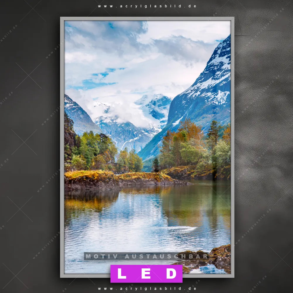 LED Acrylglasbild Canvalight® DIA | Schöne Natur in Norwegen | Hochformat