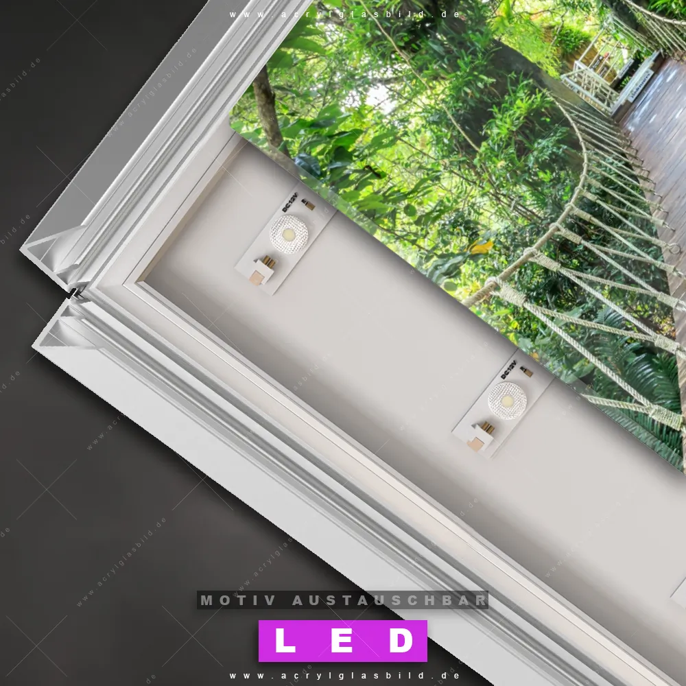 Na, worauf wartest du noch? Mach deine Wände zum Star der Show und bestelle jetzt das Canvalight® DIA LED Acrylglasbild tropischer Wald mit Hängebrücke. Deine Wände werden es dir danken und deine Freunde werden dank der wechselbaren Motive vor Neid platzen!