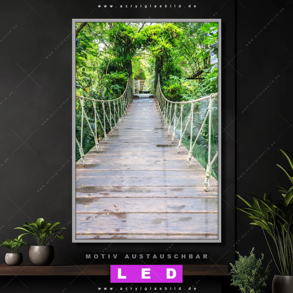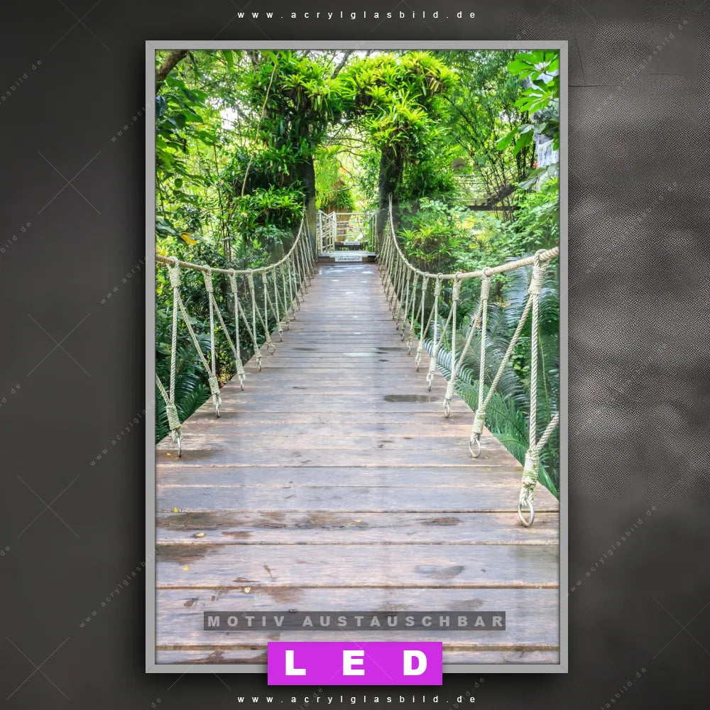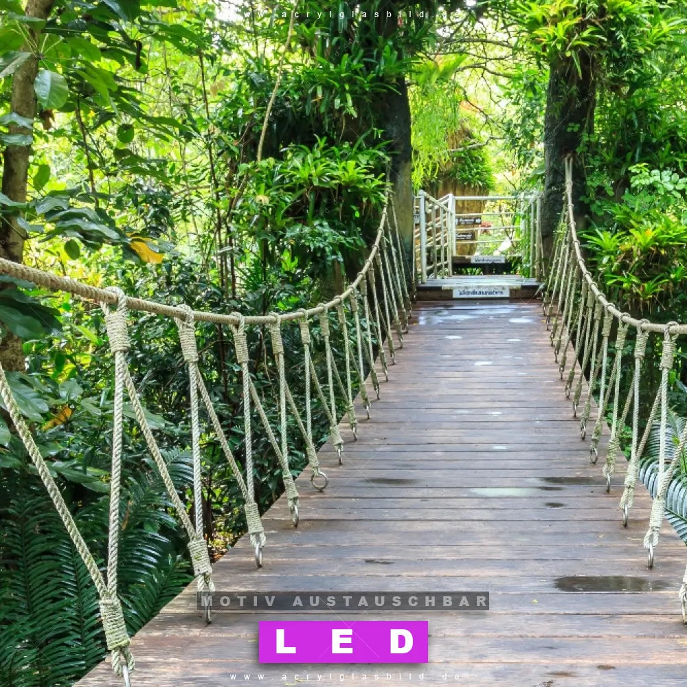 LED Acrylglasbild Canvalight® DIA | Hängebrücke im Dschungel | Hochformat