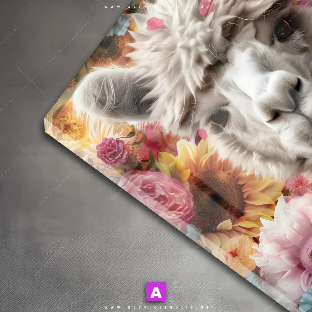 Das Beste daran ist, dass unser Acrylglasbild Blumiges Alpaka Gesicht im Stil Floral, Surreal - Fantasy perfekt zu jedem Einrichtungsstil passt. Gestaltet als Digitale Kunst, bringt es nicht nur deine Wand, sondern auch dein Herz zum Strahlen.