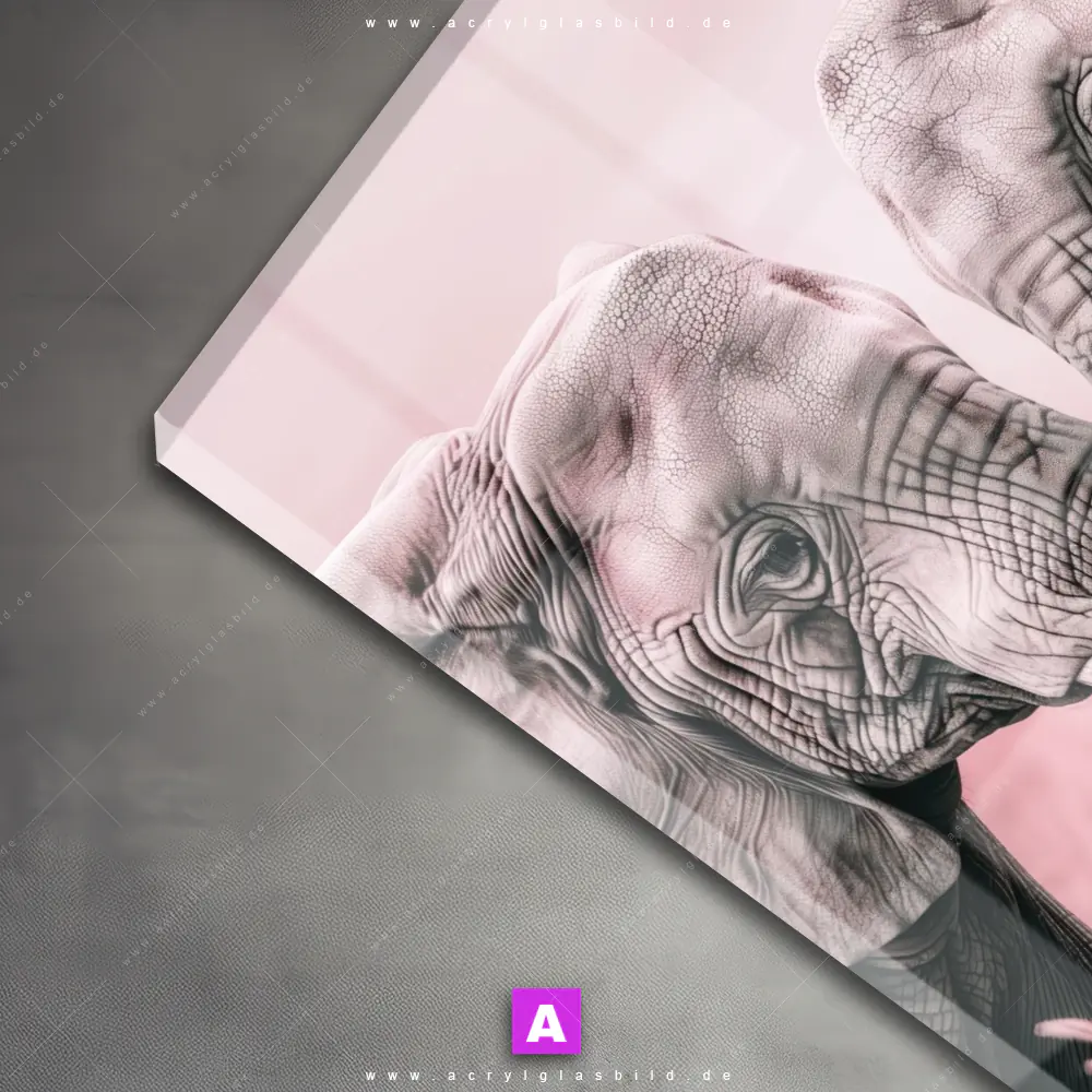 <b>Produktart:</b> Acrylglasbild | Glasbild | Wandbild aus Kunstglas | <b> Motiv:</b> Elefanten - Harmonie in Pastell | <b> Bildausrichtung:</b> Quadrat | <b> Max. Motiv-Größe:</b> 410cm breit | 275cm hoch | <b> Verfügbare Formate: </b> Quadrat, Querformat, Hochformat, Panorama, Schmal, Rund | <b> Kategorie:</b>  Tierwelt | <b> Farben:</b>  Rosa, Weiss, Grau , Beige | <b> Kunstformen:</b>  Digitale Kunst, Fotografie | <b> Kunststile:</b>  Retro - Vintage