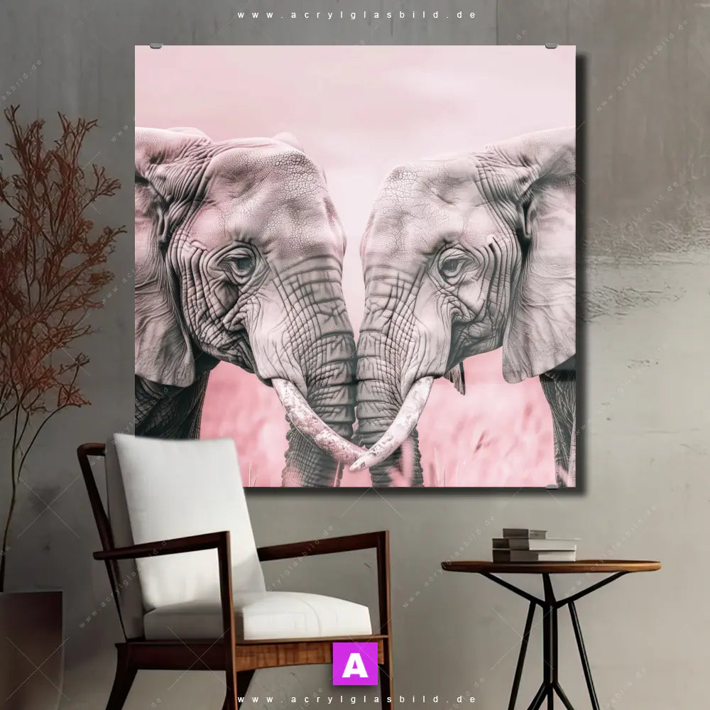 Acrylglasbild | Elefanten - Harmonie in Pastell | Quadrat