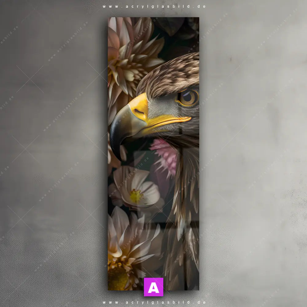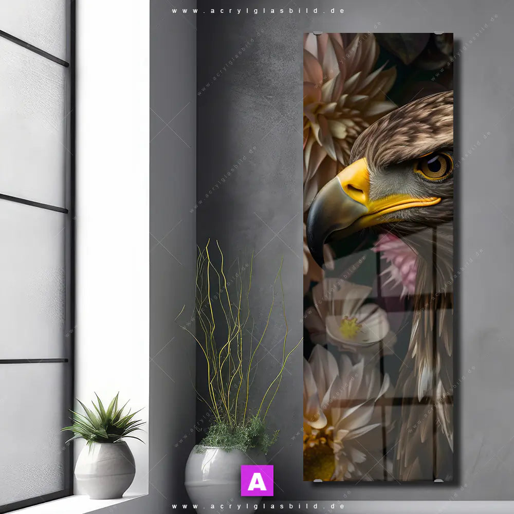 Acrylglasbild | Florale Eleganz und Adlerblick | Schmal