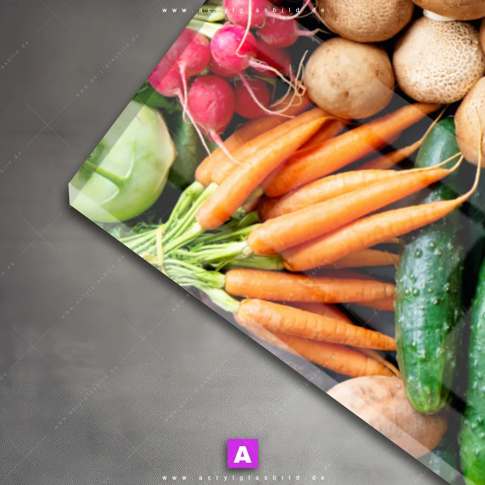 Hallo, auf Wiedersehen langweilige Wände! Gib deinem Raum ein stilvolles Upgrade mit unserem Acrylglasbild Gesundes Gemüse im Hochformat, das nicht nur Küche - Esszimmer, Bar - Gastronomie, sondern auch jeden anderen Raum im Handumdrehen auf ein neues Niveau hebt!