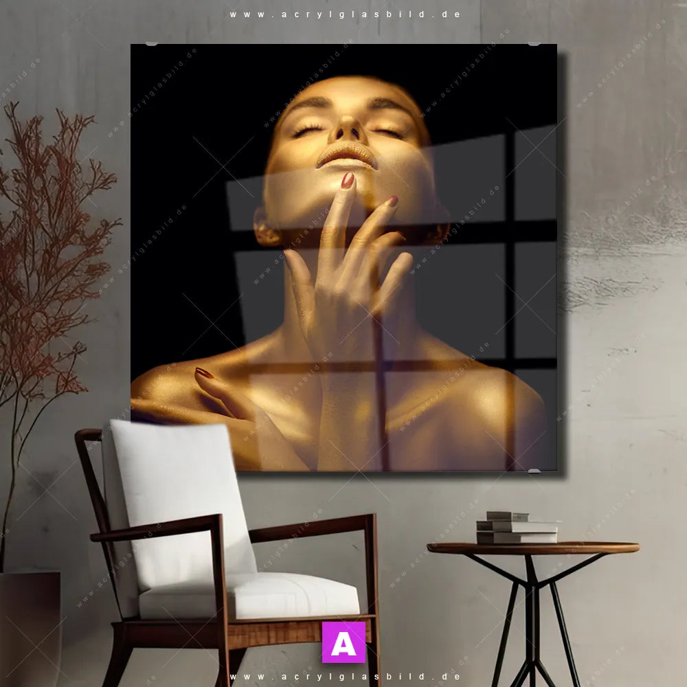 <b>Produktart:</b> Acrylglasbild | Glasbild | Wandbild aus Kunstglas | <b> Motiv:</b> Golden Skin | <b> Bildausrichtung:</b> Quadrat | <b> Max. Motiv-Größe:</b> 300cm breit | 210cm hoch | <b> Verfügbare Formate: </b> Quadrat, Querformat, Hochformat, Panorama, Schmal, Rund | <b> Kategorie:</b> Porträts - Menschen | <b> Farben:</b> Gold, Schwarz | <b> Kunstformen:</b> Fotografie | <b> Kunststile:</b> Modern Art