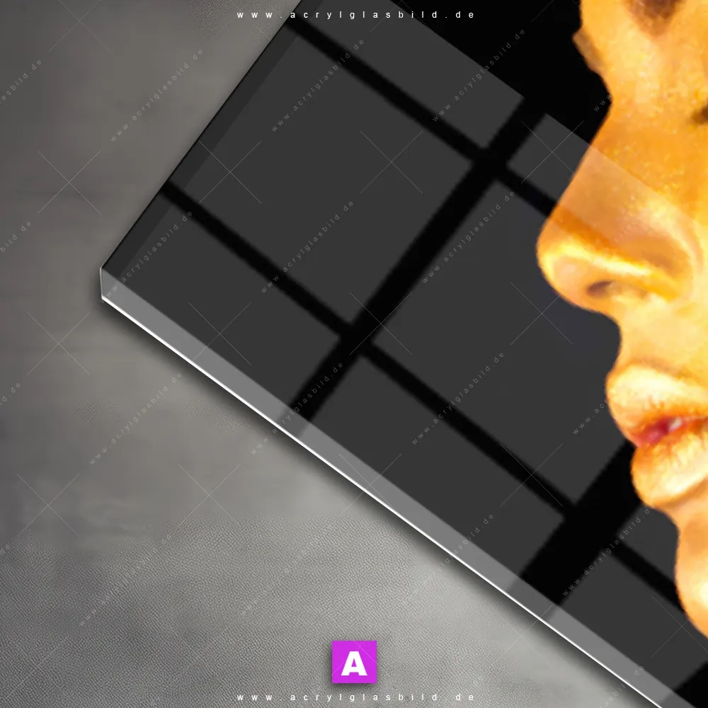 Das Motiv Goldenes Haar wird im UV-Direktdruck in den Farben Gold, Schwarz auf die Rückseite einer 5mm starken, transparenten Acrylglasplatte gedruckt. Das durchscheinende Motiv Frau mit goldigem Haar im Modern Art Stil wird anschließend vollflächig mit einer weißen Schicht hinterlegt. Das Porträts - Menschen Acrylglasbild | Schmal erhält so eine bemerkenswerte Farbbrillanz, hohe Schärfe und erstaunliche Tiefenwirkung.