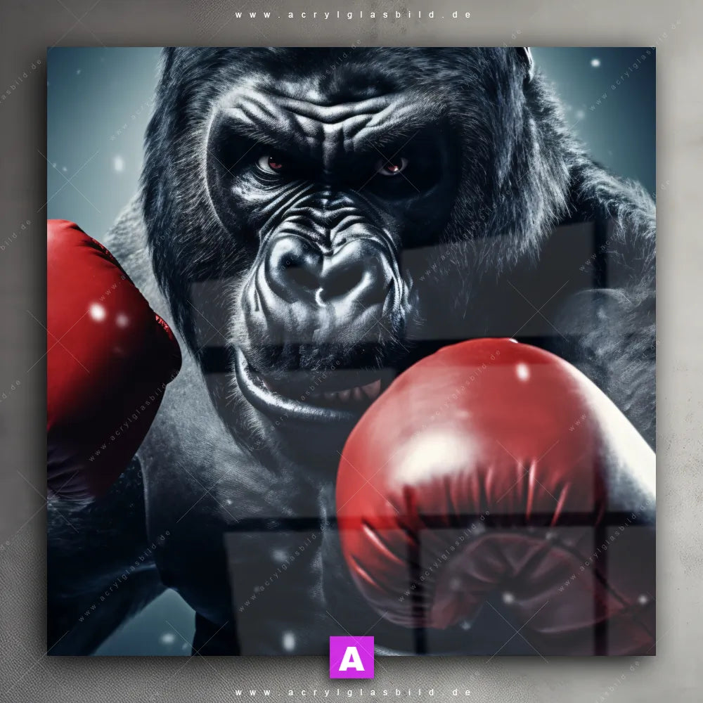 Acrylglasbild | Gorilla mit roten Boxhandschuhen | Quadrat