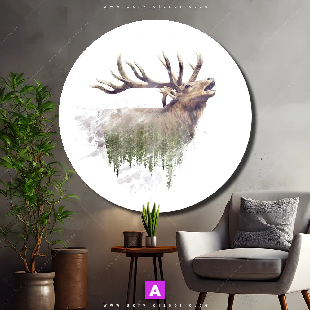 Hey du! Bist du es auch leid, auf langweilige, weiße Wände in deinem Raum zu starren und dich zu fragen, ob das der Sinn des Lebens ist? Unser Acrylglasbild mit dem Titel Hirsch & Wald No.2 im Format Rund verwandelt deine Wand in ein Kunstwerk und macht deinen Raum zum absoluten Hingucker.