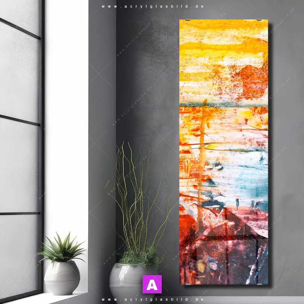 <b>Produktart:</b> Acrylglasbild | Glasbild | Wandbild aus Kunstglas | <b> Motiv:</b> Klippe am Meer | <b> Bildausrichtung:</b> Schmal | <b> Max. Motiv-Größe:</b> 180cm breit | 180cm hoch | <b> Verfügbare Formate: </b> Quadrat, Querformat, Hochformat, Panorama, Schmal, Rund | <b> Kategorie:</b>  Muster - Texturen | <b> Farben:</b>  Orange, Blau, Hellblau, Weiss | <b> Kunstformen:</b>  Digitale Kunst, Kunst - Malerei | <b> Kunststile:</b>  Abstrakt, Modern Art