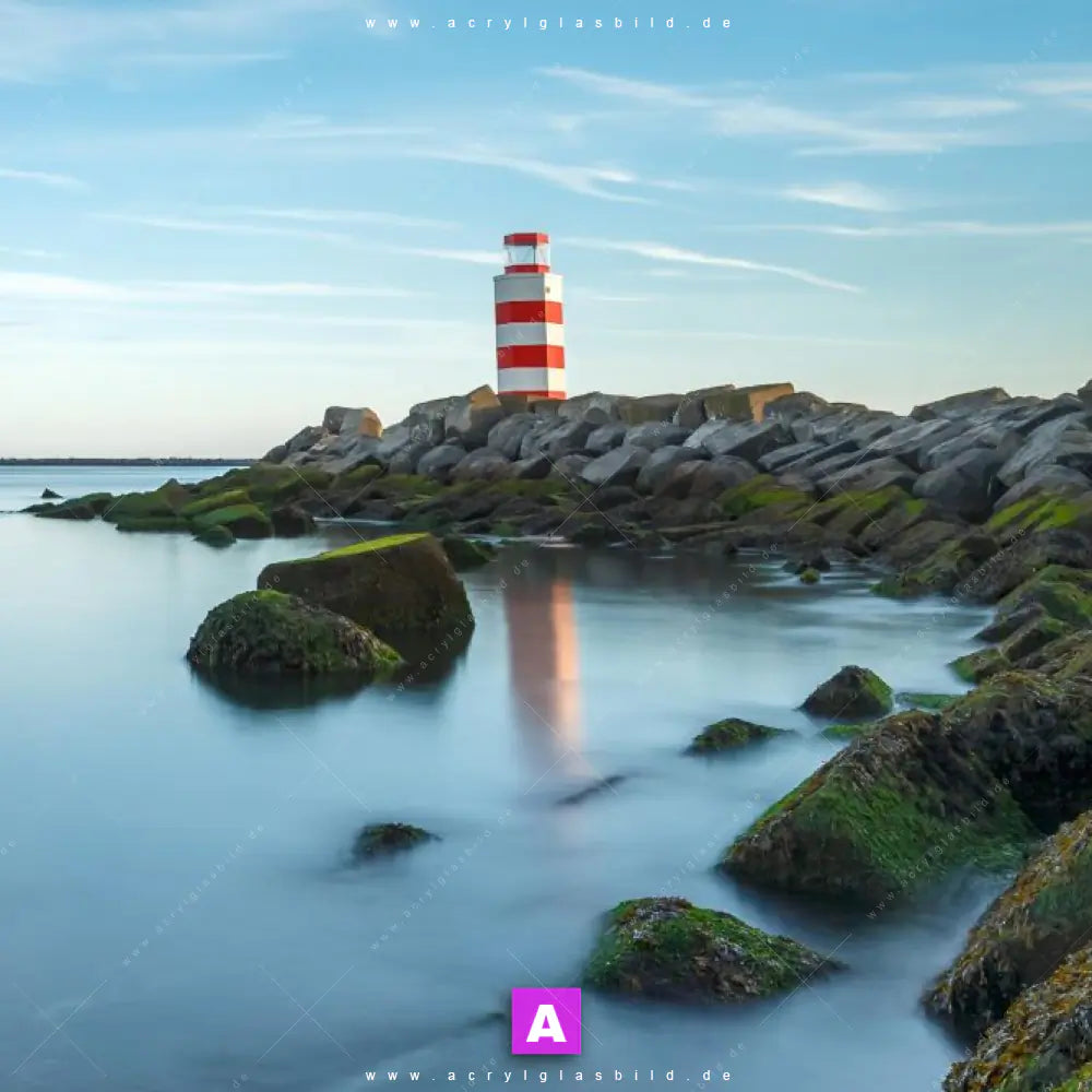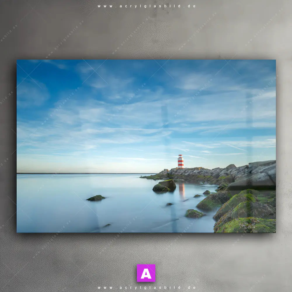 Unser Acrylglasbild Leuchtturm am ruhigen Meer aus der Kategorie Strand - Meer, Landschaften wird deinem Raum einen Hauch von Luxus verleihen, und du wirst nie wieder von Langeweile geplagt sein. Und wenn du nach einem Bild mit Leuchtturm, Meer, Ostsee, Nordsee, Deutschland, Küste, Felsen, Horizont suchst, empfehlen wir dir unser Acrylglasbild Küstenlandschaft mit Leuchtturm in den aufregenden Farben Blau, Grün, Rot, Grau. Mit seiner Gestaltung als Digitale Kunst passt es hervorragend zum Natürlich - Realistisch-Stil.
