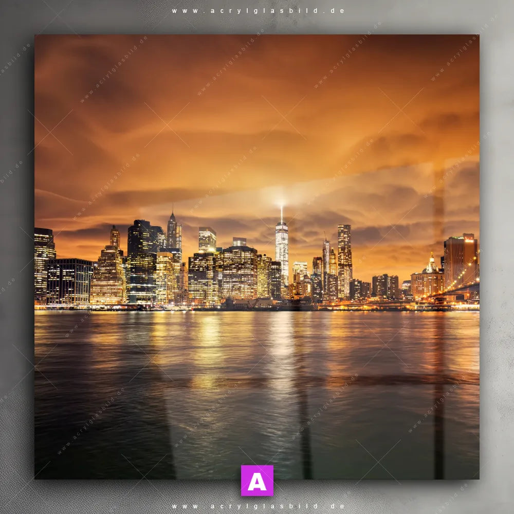 <b>Produktart:</b> Acrylglasbild | Glasbild | Wandbild aus Kunstglas | <b> Motiv:</b> Manhatten bei Sonnenuntergang | <b> Bildausrichtung:</b> Quadrat | <b> Max. Motiv-Größe:</b> 270cm breit | 180cm hoch | <b> Verfügbare Formate: </b> Quadrat, Querformat, Hochformat, Panorama, Schmal, Rund | <b> Kategorie:</b> Städte - Skylines | <b> Farben:</b> Orange, Braun, Schwarz | <b> Kunstformen:</b> Fotografie | <b> Kunststile:</b> Modern Art