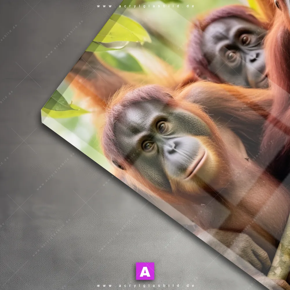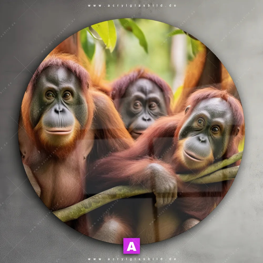 Hey du! Bist du es auch leid, auf langweilige, weiße Wände in deinem Raum zu starren und dich zu fragen, ob das der Sinn des Lebens ist? Unser Acrylglasbild mit dem Titel Orang Utan Familie im Regenwald im Format Rund verwandelt deine Wand in ein Kunstwerk und macht deinen Raum zum absoluten Hingucker.