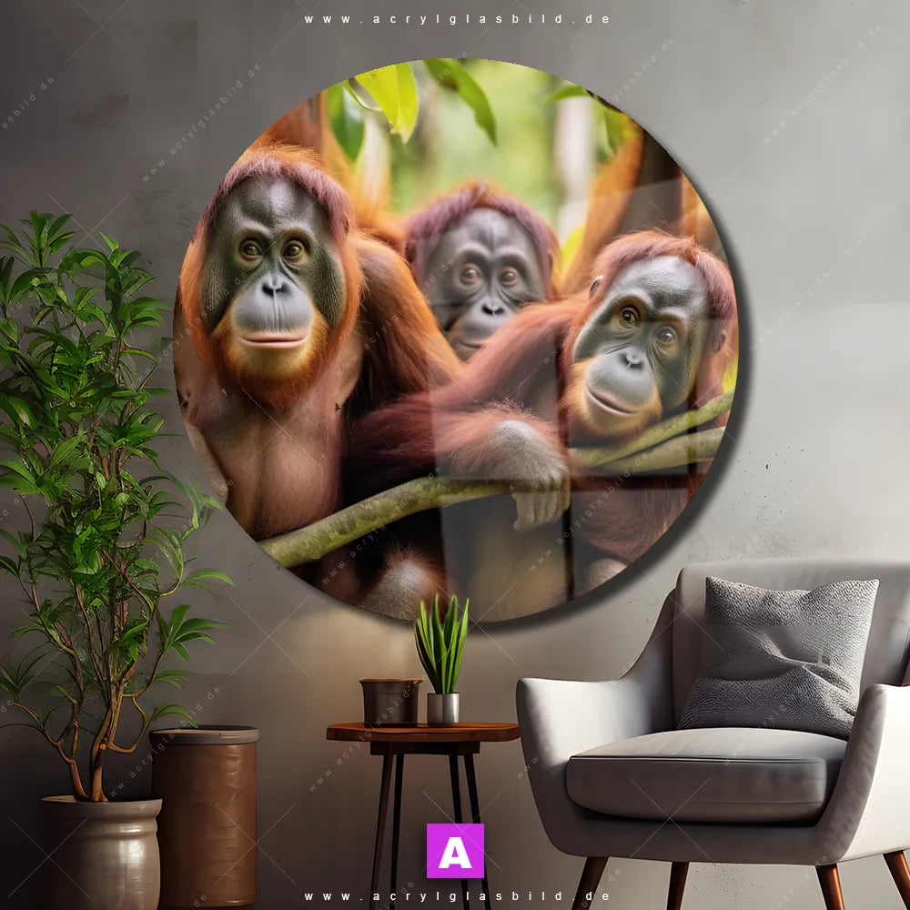 Acrylglasbild | Orang Utan Familie im Regenwald | Rund