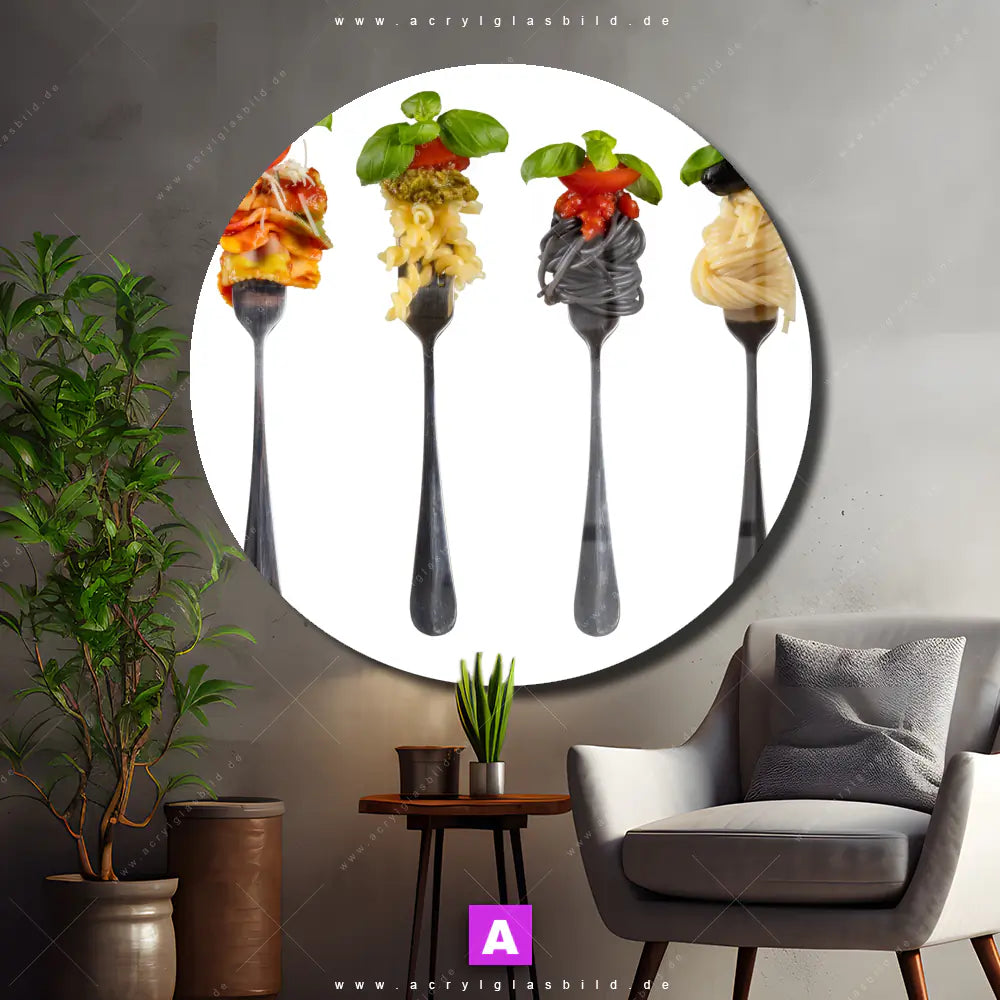 Acrylglasbild | Pasta auf Gabeln | Rund