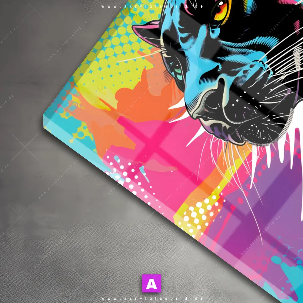Das Beste daran ist, dass unser Acrylglasbild Panther in bunten Farben im Stil Pop Art, Modern Art, Abstrakt perfekt zu jedem Einrichtungsstil passt. Gestaltet als Digitale Kunst, Vektor - Illustration, bringt es nicht nur deine Wand, sondern auch dein Herz zum Strahlen.