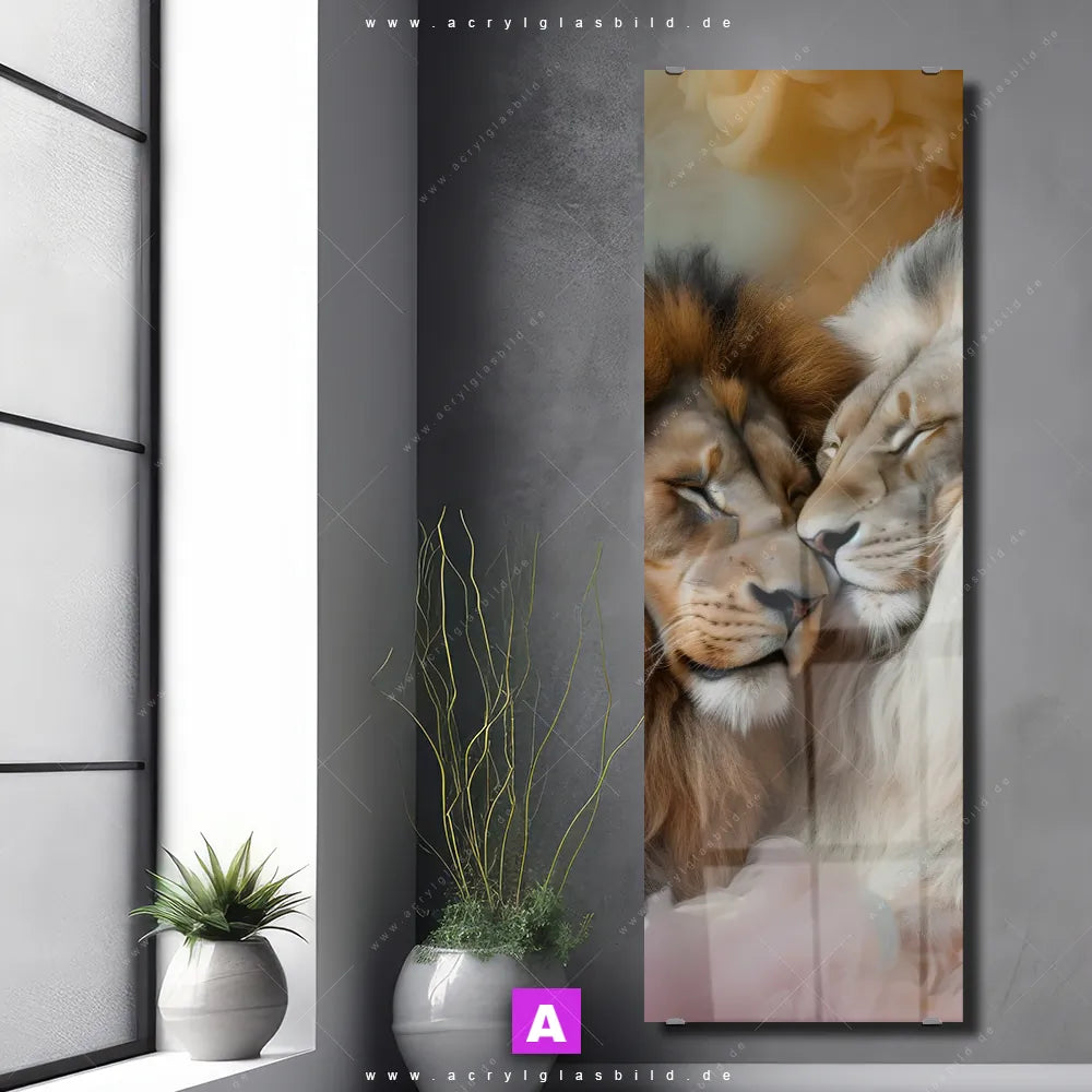 Langweilige Wände sind wie ein trockenes Toastbrot ohne Butter und Marmelade - einfach fade und nicht sehr appetitlich. Aber zum Glück haben wir das perfekte Acrylglasbild für dich: Mit unserem Kunstwerk Sanfte Löwenmomente in buntem Nebel im Format Schmal wird deine Wand zur Leinwand und dein Raum zum Blickfang.