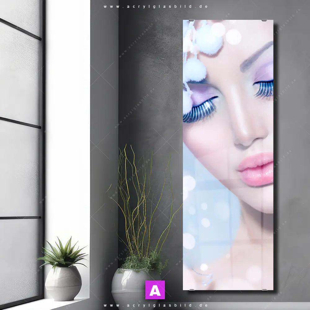 Vergiss also langweilige weiße Wände und entscheide dich für das Acrylglasbild Winter-Make-up Look, gestaltet als Fotografie, das deinem Raum Charakter verleiht und dich jeden Tag aufs Neue inspiriert. Mit diesem Porträts - Menschen Acrylglasbild wird deine Wand zur Kunst und du zum Kunstliebhaber.