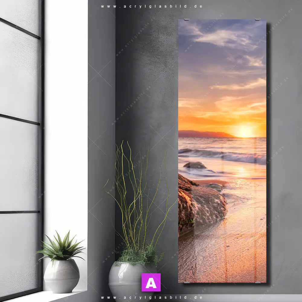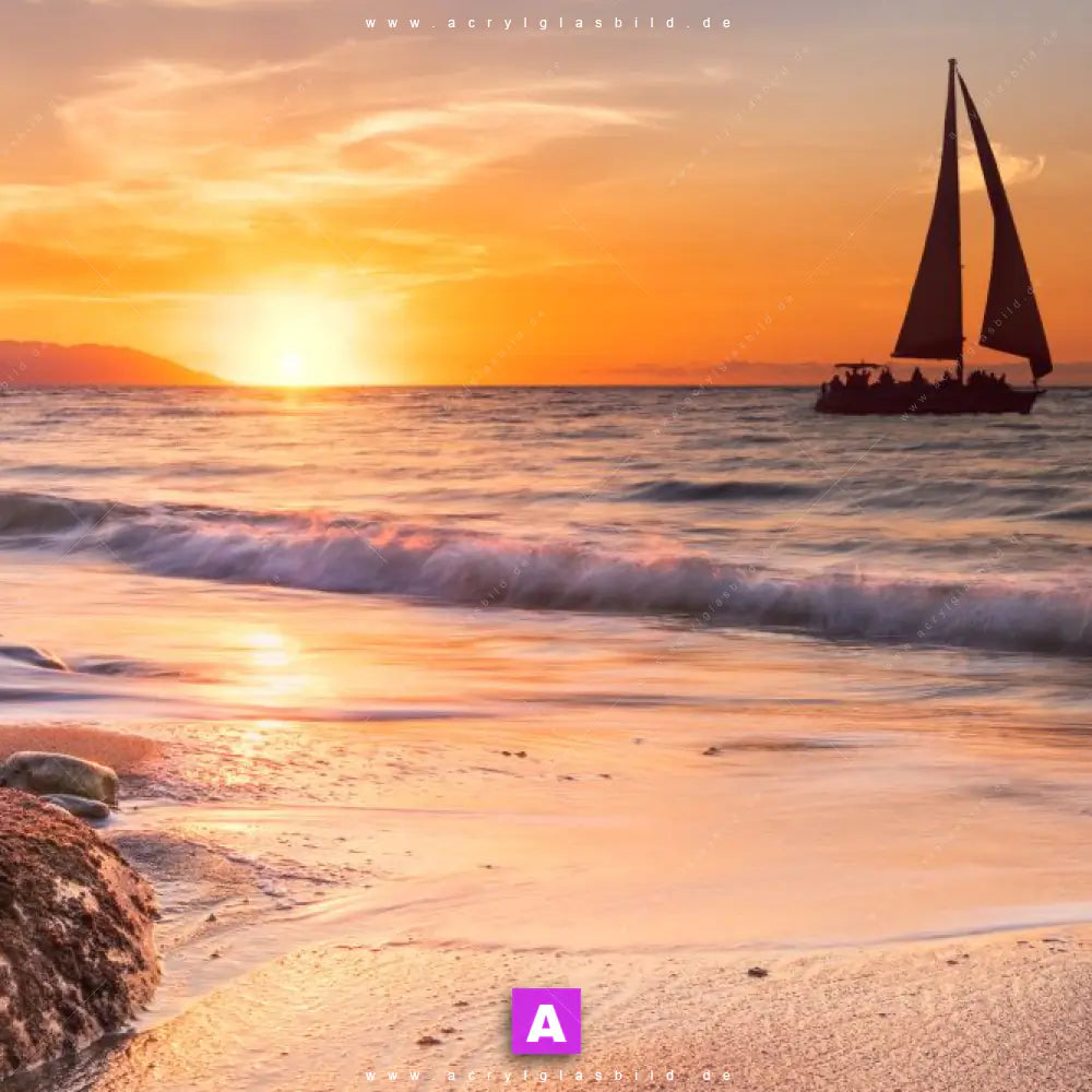 Vergiss also langweilige weiße Wände und entscheide dich für das Acrylglasbild Boot bei Sonnenuntergang im Meer, gestaltet als Fotografie, das deinem Raum Charakter verleiht und dich jeden Tag aufs Neue inspiriert. Mit diesem Landschaften, Strand - Meer Acrylglasbild wird deine Wand zur Kunst und du zum Kunstliebhaber.