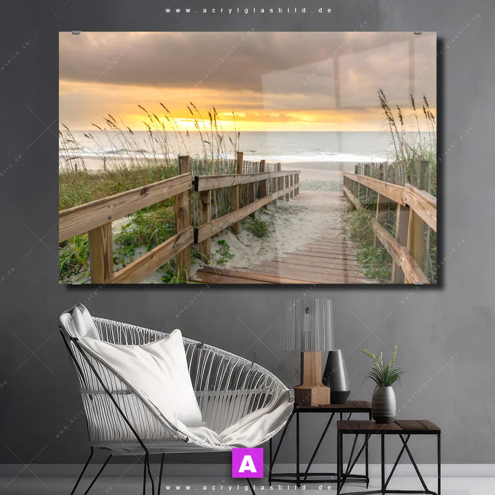 Unser Acrylglasbild Holzsteg zum Meer aus der Kategorie Strand - Meer, Landschaften wird deinem Raum einen Hauch von Luxus verleihen, und du wirst nie wieder von Langeweile geplagt sein. Und wenn du nach einem Bild mit Strand, Meer, Küste, Weg, Natur, Sommer, Frühling, Steg, Gräser, Sonnenuntergang, Sonnenaufgang suchst, empfehlen wir dir unser Acrylglasbild Idyllischer Strand bei Sonnenuntergang in den aufregenden Farben Beige, Grün, Braun, Orange. Mit seiner Gestaltung als Fotografie passt es hervorragend zum Natürlich - Realistisch-Stil.