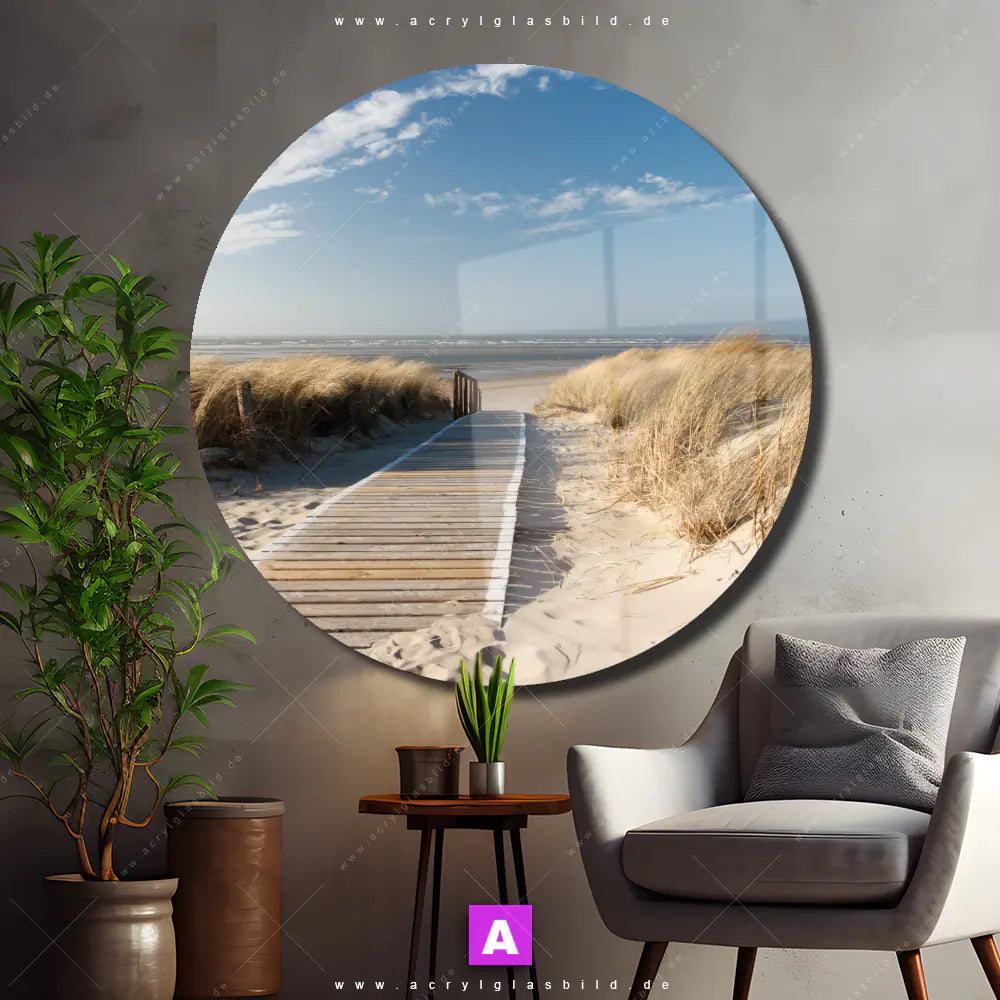Hey du! Bist du es auch leid, auf langweilige, weiße Wände in deinem Raum zu starren und dich zu fragen, ob das der Sinn des Lebens ist? Unser Acrylglasbild mit dem Titel Strand auf Langeoog im Format Rund verwandelt deine Wand in ein Kunstwerk und macht deinen Raum zum absoluten Hingucker.