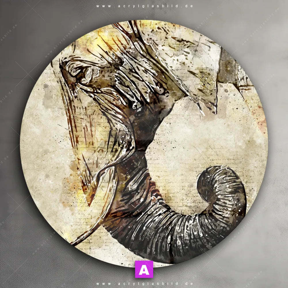 Hey du! Bist du es auch leid, auf langweilige, weiße Wände in deinem Raum zu starren und dich zu fragen, ob das der Sinn des Lebens ist? Unser Acrylglasbild mit dem Titel Vintage Elefant im Format Rund verwandelt deine Wand in ein Kunstwerk und macht deinen Raum zum absoluten Hingucker.