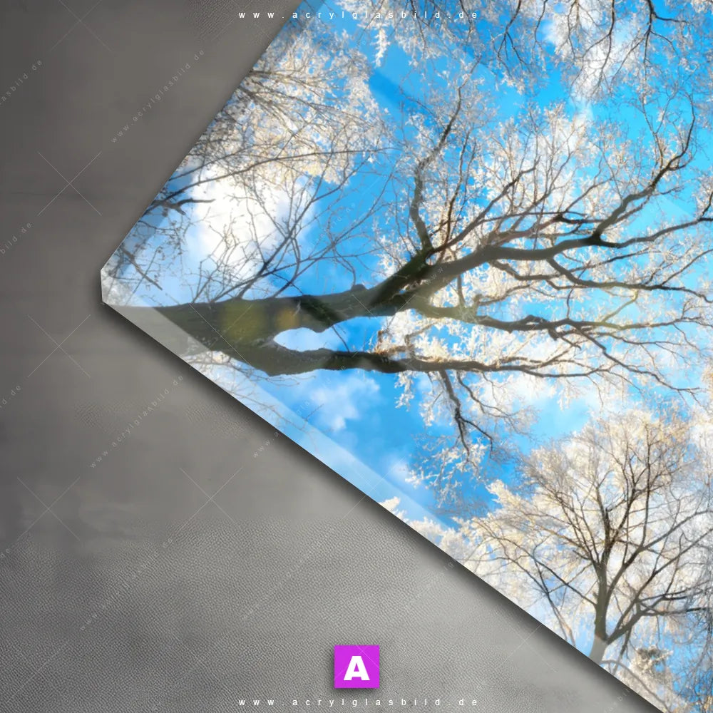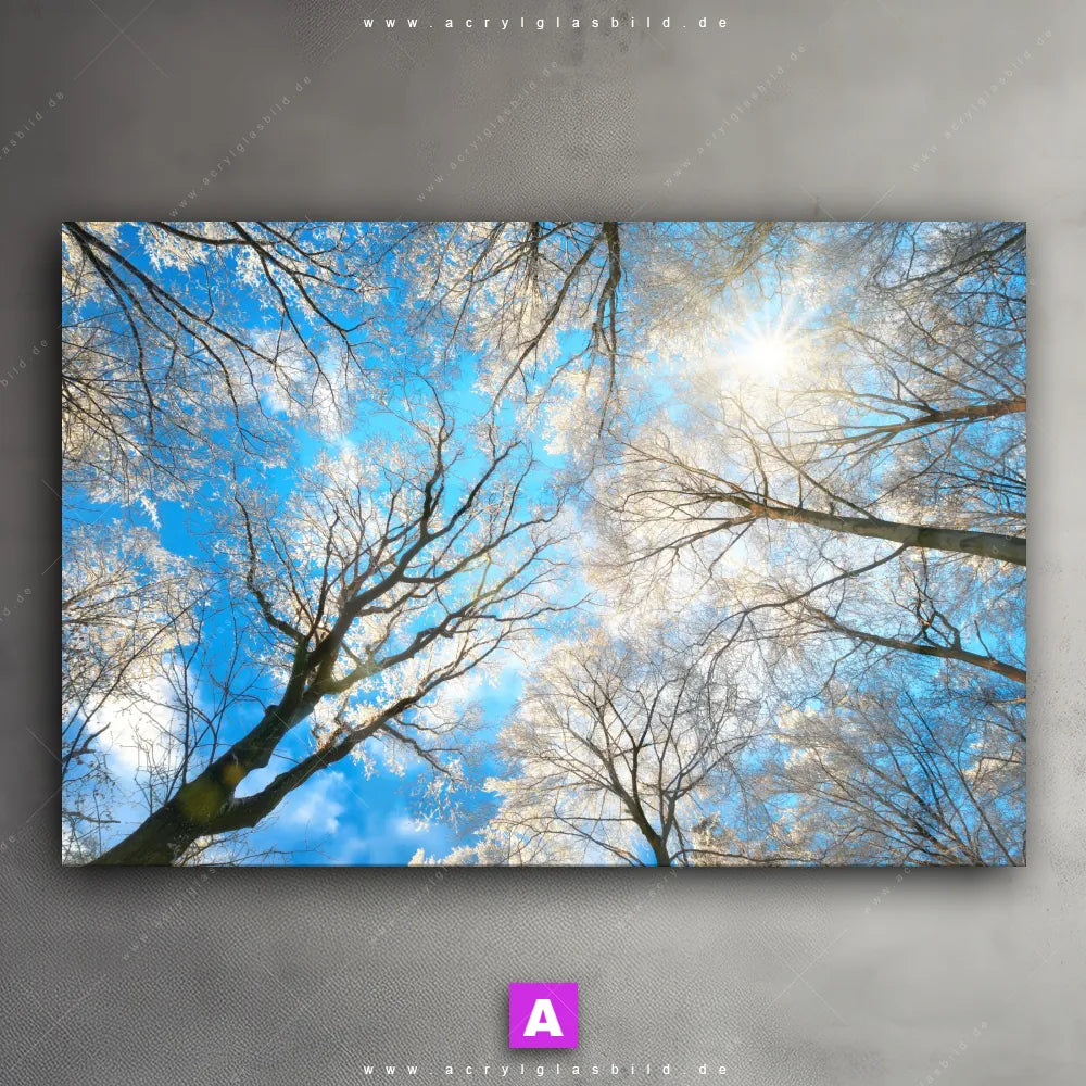 Unser Acrylglasbild Winterwald aus der Kategorie Wald - Bäume wird deinem Raum einen Hauch von Luxus verleihen, und du wirst nie wieder von Langeweile geplagt sein. Und wenn du nach einem Bild mit Wald, Baum, Bäume, Natur, Baumkrone, Froschperspektive, Baumwipfel, Schnee, Winter, Buche, Eiche suchst, empfehlen wir dir unser Acrylglasbild Bäume im Winter in den aufregenden Farben Hellblau, Blau, Weiss. Mit seiner Gestaltung als Fotografie passt es hervorragend zum Natürlich - Realistisch, Modern Art-Stil.