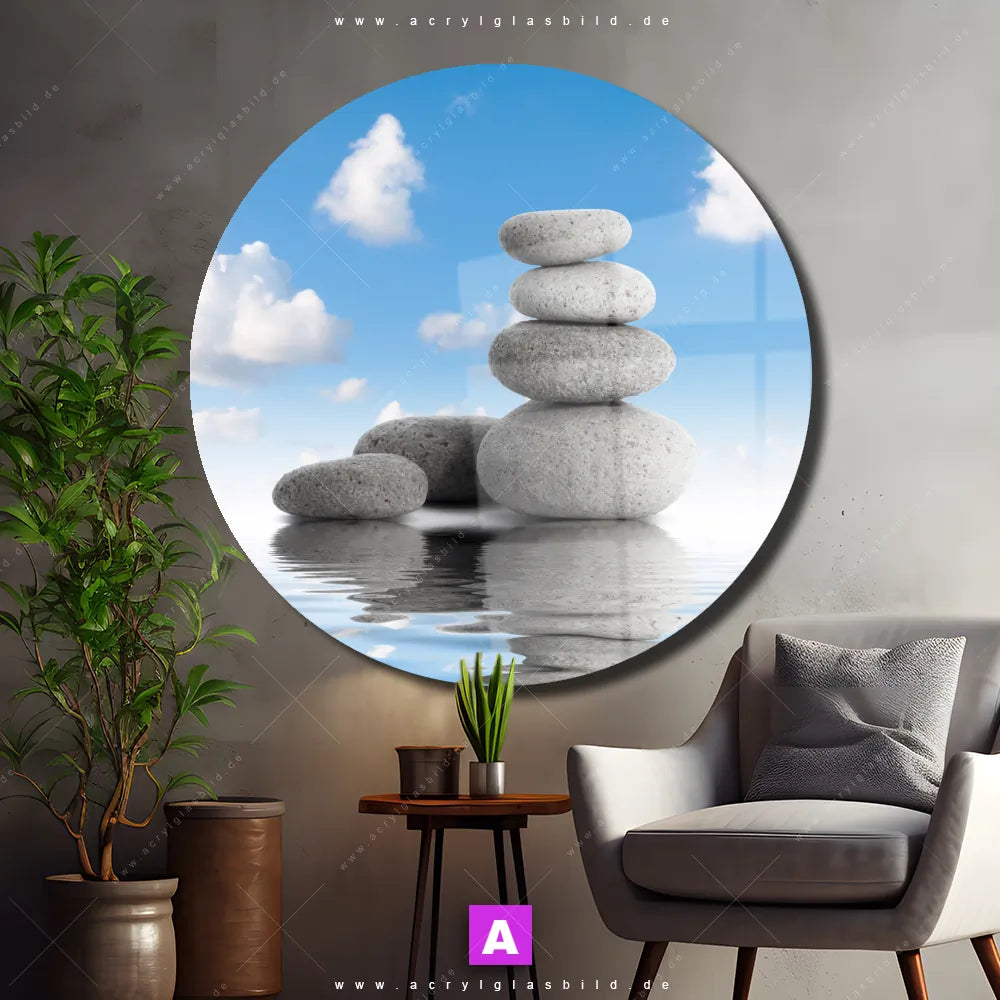 Hey du! Bist du es auch leid, auf langweilige, weiße Wände in deinem Raum zu starren und dich zu fragen, ob das der Sinn des Lebens ist? Unser Acrylglasbild mit dem Titel Zen Spa Steine im Format Rund verwandelt deine Wand in ein Kunstwerk und macht deinen Raum zum absoluten Hingucker.