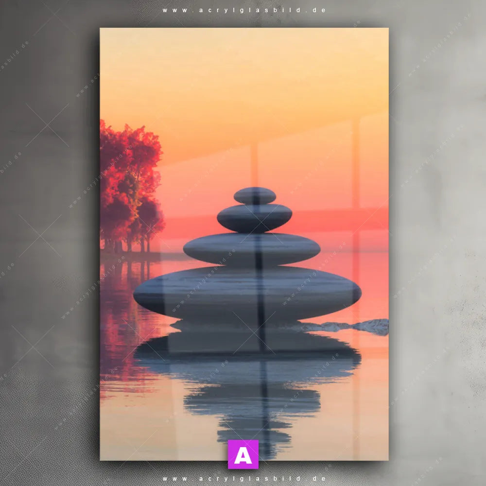 Acrylglasbild | Zen Steine & Sonnenuntergang | Hochformat