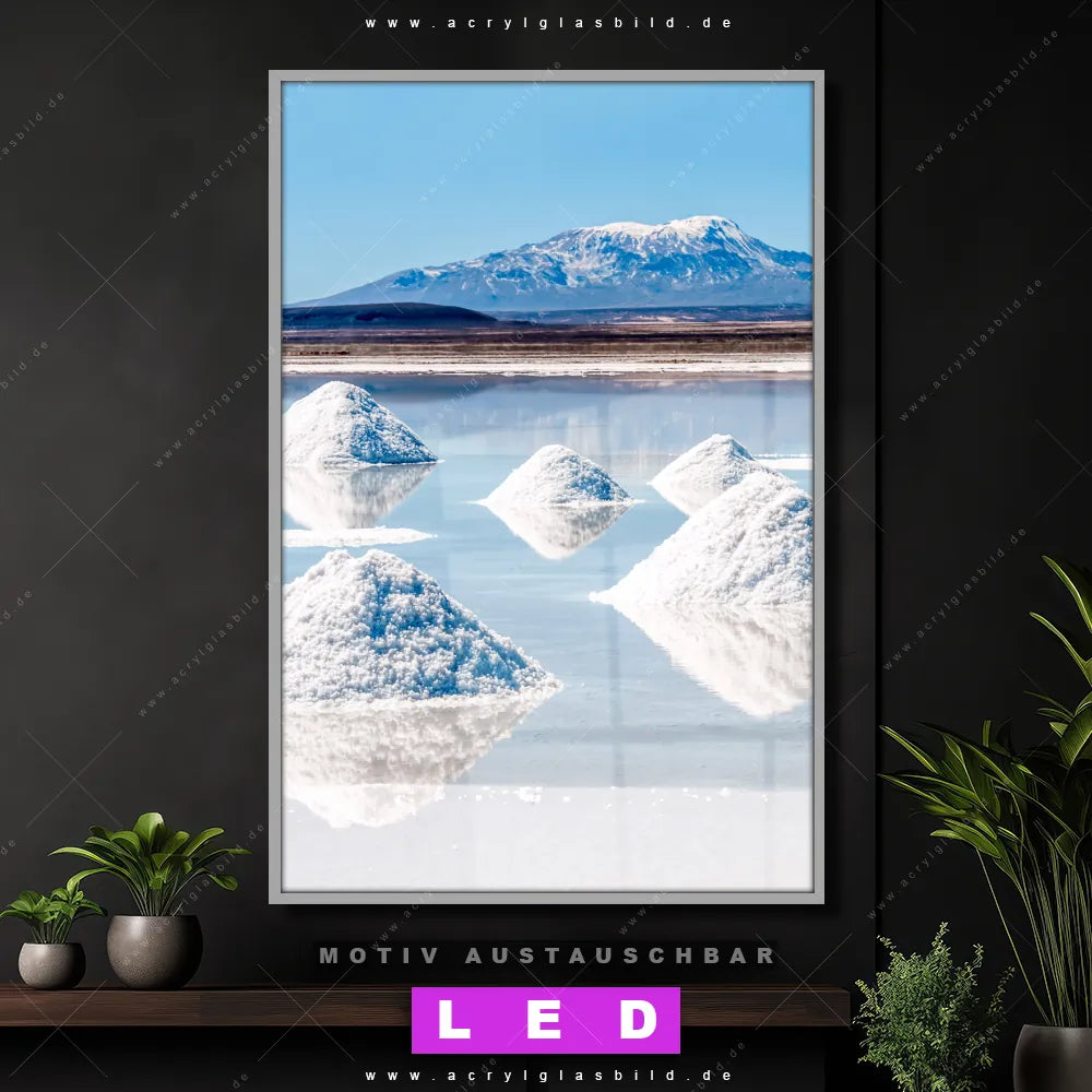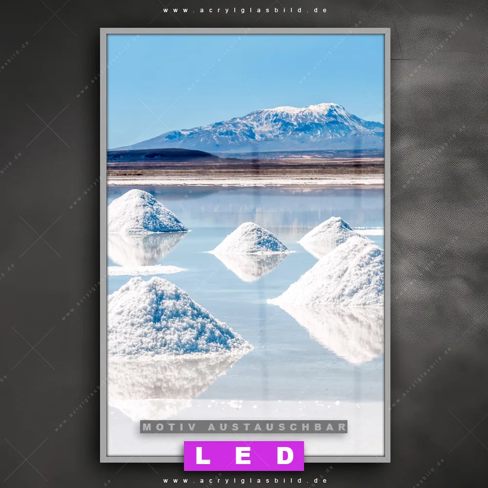 Du suchst nach einem Wandbild mit LED Beleuchtung als ultimativen Hingucker für deine Wände? Dann haben wir das perfekte dimmbare LED Bild mit Fernbedienung und optionaler Farbtemperatursteuerung für dich: unser abgefahrenes Landschaften Canvalight® DIA LED Acrylglasbild! Mit dem LED Leuchtbild aus Acrylglas Salzlandschaft in den Anden im Hochformat mit austauschbarer bedruckter Acrylglas-Scheibe bringst du nicht nur Licht, sondern auch ordentlich Stil in deine Bude.