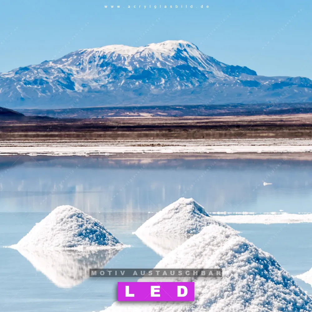 Wer braucht schon langweilige Wände, wenn man sie mit unserem LED Acrylglasbild Canvalight® DIA Salzpyramiden vor Bergkulisse aufpeppen kann? Dank der genialen LED-Ausleuchtung wirst du in Arzt - Praxis, Büro - Kanzlei, Flur - Eingangsbereich, Wohnzimmer - Schlafzimmer nie wieder über deine eigenen Füße stolpern. Wenn du nach einem beleuchteten Wandbild aus Acrylglas mit Natur, Berge, See, Himmel, Südamerika, Bolivien, Spiegelung, Wasser, Wasserspiegelung suchst, dann ist unser LED Acrylglasbild Weiße Pyramiden der Anden in den hammermäßigen Motiv-Farben Weiss, Blau, Hellblau genau das richtige LED Bild für dich. Im coolen Natürlich - Realistisch Stil gestaltet, passt das LED Leuchtbild mit DIA-Klapprahmen und glänzender Front aus Acrylglas perfekt zu jedem Einrichtungsstil – sogar zu deinem chaotischen Kreativlabor!
