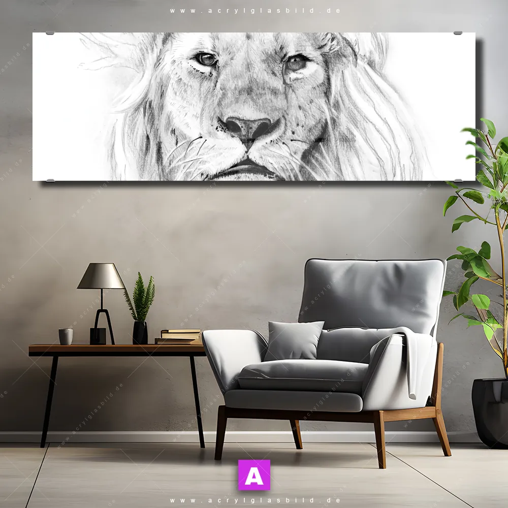 Also, worauf wartest du noch? Verwandle deine tristen Wände in Arzt - Praxis, Büro - Kanzlei, Bar - Gastronomie, Flur - Eingangsbereich, Wohnzimmer - Schlafzimmer in inspirierende Kunstwerke aus der Kategorie Tierwelt und bestelle jetzt das Acrylglasbild Löwenzeichnung!