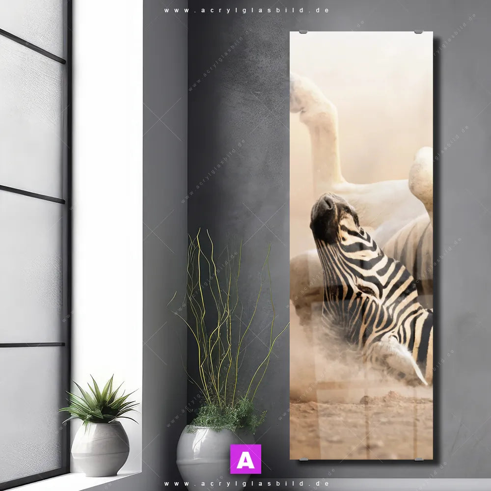 Langweilige Wände sind wie ein trockenes Toastbrot ohne Butter und Marmelade - einfach fade und nicht sehr appetitlich. Aber zum Glück haben wir das perfekte Acrylglasbild für dich: Mit unserem Kunstwerk Zebra & Staub im Format Schmal wird deine Wand zur Leinwand und dein Raum zum Blickfang.