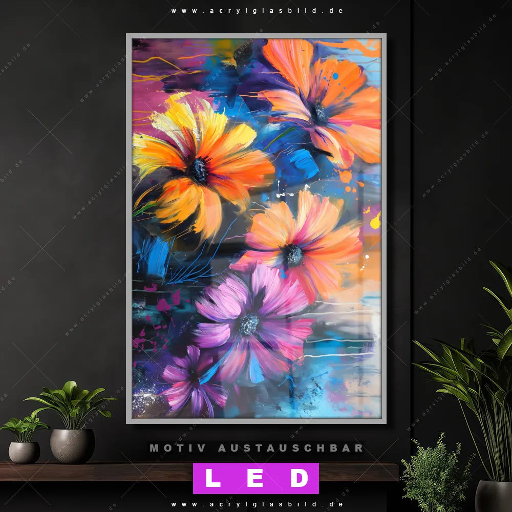 LED Acrylglasbild Canvalight® DIA | Abstrakte Blumenpracht | Hochformat