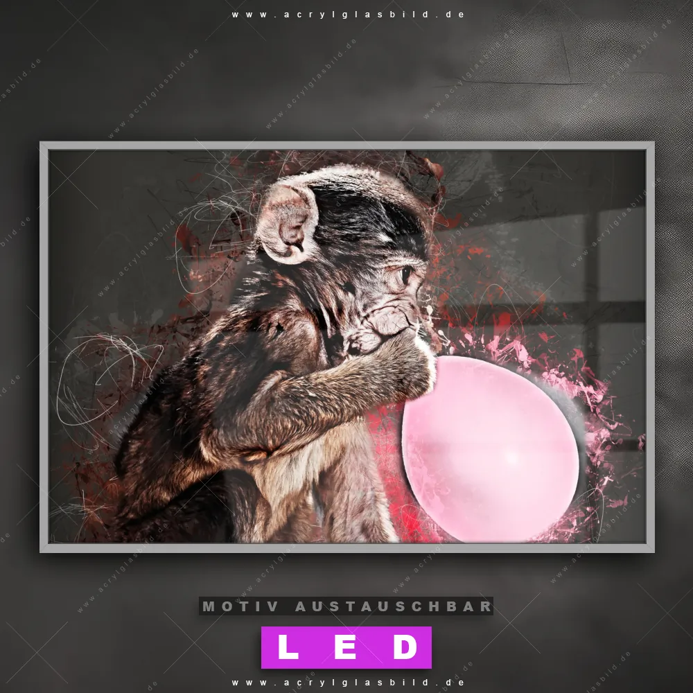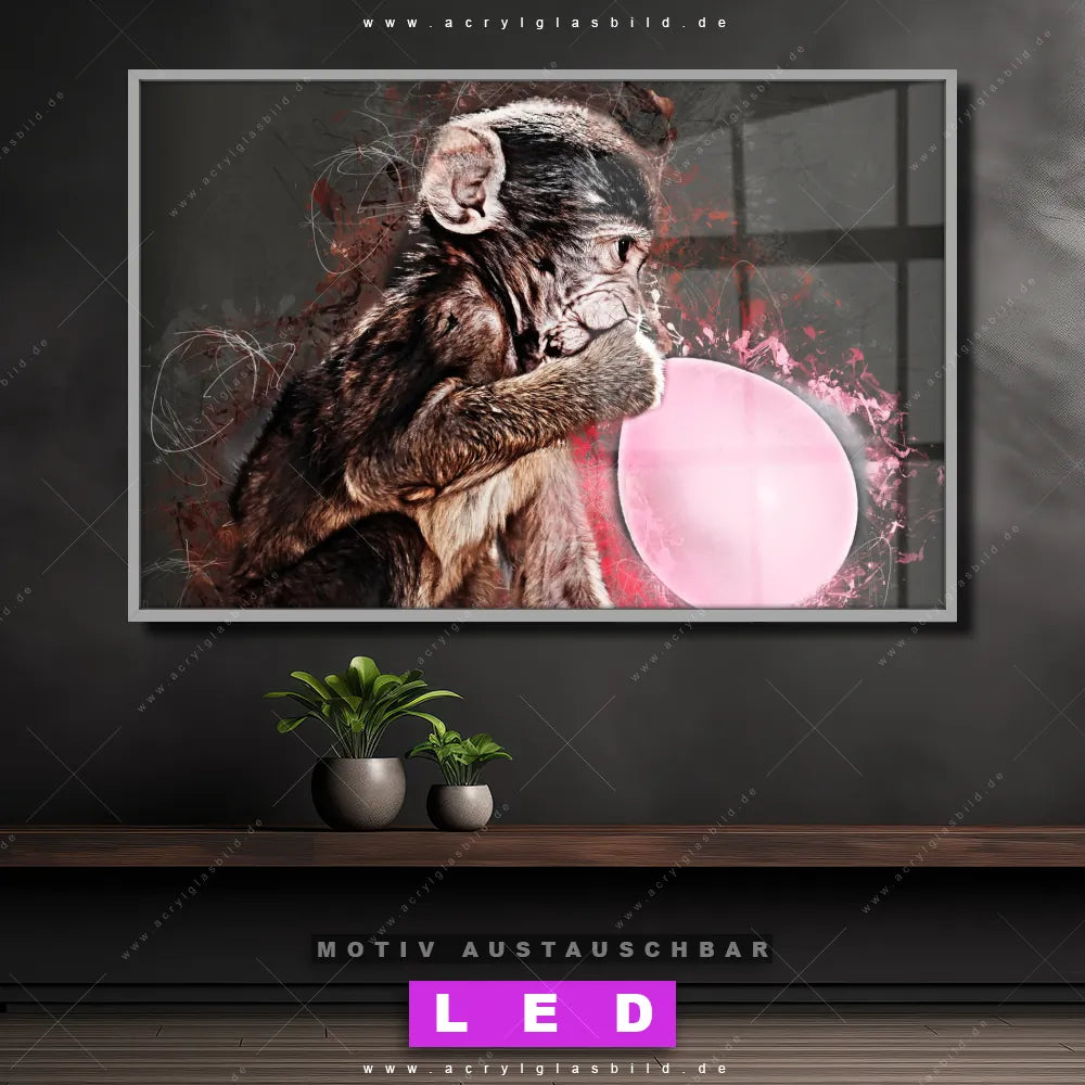 Mit unserem LED Acrylglasbild Canvalight® DIA Affe mit Ballon und seiner genialen LED-Ausleuchtung wirst du nie wieder im Dunkeln auf deinem Sofa herumtappen. Wenn du nach einem beleuchteten Wandbild aus Acrylglas mit Tier, Affe, Monkey, Kaugummi, Bubble Gum, lustig, Kunst, Ballon, Luftballon für Bar - Gastronomie, Flur - Eingangsbereich, Wohnzimmer - Schlafzimmer suchst, ist unser LED Leuchtbild Babyaffe mit Luftballon in den beeindruckenden Motiv-Farben Pink, Rosa, Schwarz genau das richtige beleuchtete Wandbild für dich. Gestaltet im Abstrakt, Modern Art, Grunge Stil, passt dieses LED Wandbild mit DIA-Klapprahmen und glänzender Front aus Acrylglas perfekt zu jedem Einrichtungsstil – sogar zu deinem chaotischen kreativen Durcheinander!