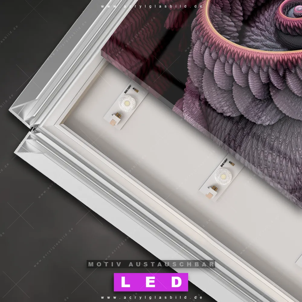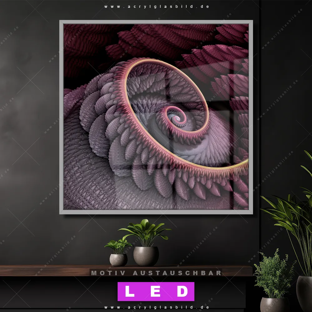 Vergiss dunkle Ecken und Langeweile! Mit unserem Acrylglasbild Abstrakte Spirale mit Blütenblättern und seiner brillanten LED-Ausleuchtung wirst du dich nie wieder in der Dunkelheit verirren. Wenn du auf der Suche nach einem beleuchteten Wandbild aus Acrylglas mit Blume, Blüte, Kunst, kreativ, Spirale, Wirbel, Nahaufnahme, Detail bist, ist unser LED Acrylglasbild Canvalight® DIA Spirale in Blütenblätteroptik mit den strahlenden Motiv-Farben Schwarz, Rot, Lila genau das richtige Leuchtbild für dich. Das im Abstrakt, Modern Art, Floral Stil gestaltete LED Bild mit glänzender Front aus Acrylglas passt perfekt zu jedem Einrichtungsstil in Wohnzimmer - Schlafzimmer, Bar - Gastronomie – vom minimalistischen Chic bis zum kreativen Chaos.
