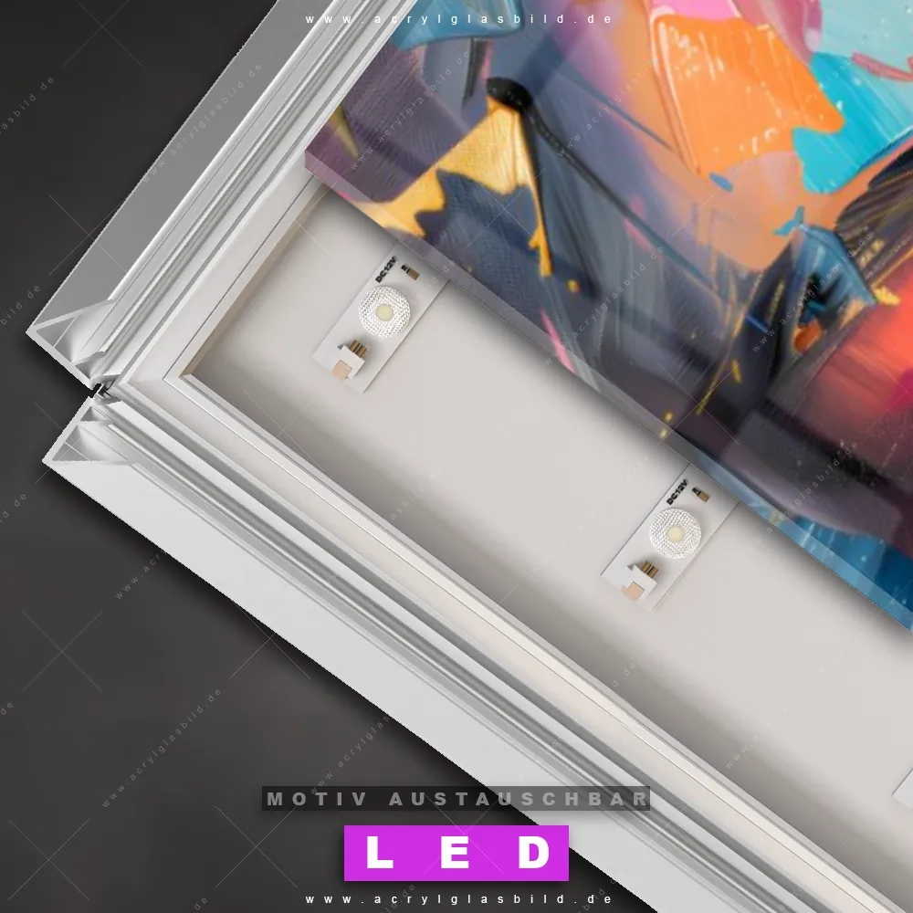 Bist du bereit, deine Wände mit einem dimmbaren LED Bild mit Fernbedienung und optionaler Farbtemperatursteuerung auf das nächste Level zu bringen? Unser Porträts - Menschen Canvalight® DIA LED Acrylglasbild ist genau das, was du brauchst! Das Wandbild mit LED Beleuchtung im Schmalen Format mit austauschbarer bedruckter Acrylglas-Scheibe Farbexplosion - Porträt Lola bringt Licht und Stil in dein Zuhause – und das in null Komma nichts!