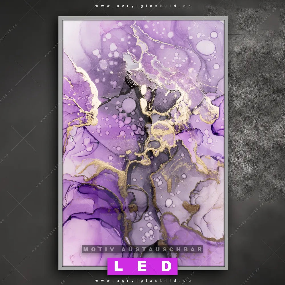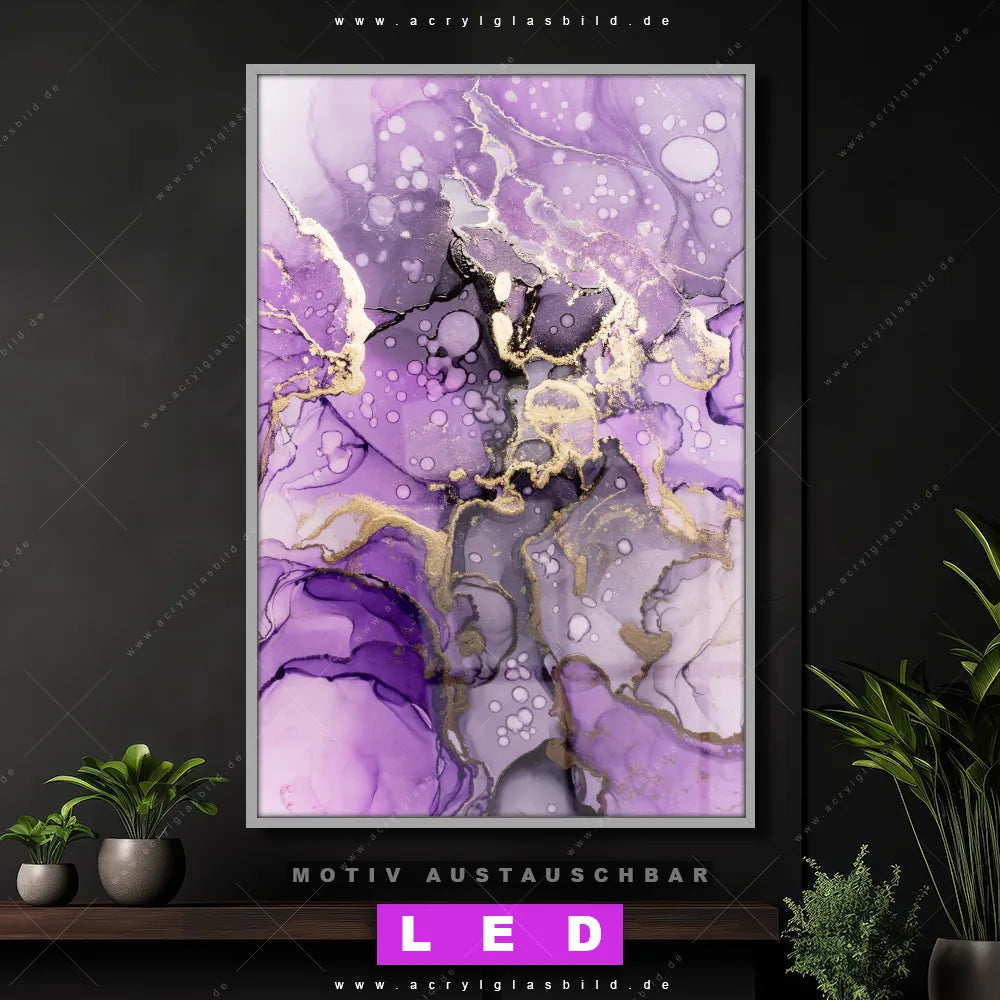 Du suchst nach einem Wandbild mit LED Beleuchtung als ultimativen Hingucker für deine Wände? Dann haben wir das perfekte dimmbare LED Bild mit Fernbedienung und optionaler Farbtemperatursteuerung für dich: unser abgefahrenes Muster - Texturen Canvalight® DIA LED Acrylglasbild! Mit dem LED Leuchtbild aus Acrylglas Fluid Art Violett im Hochformat mit austauschbarer bedruckter Acrylglas-Scheibe bringst du nicht nur Licht, sondern auch ordentlich Stil in deine Bude.