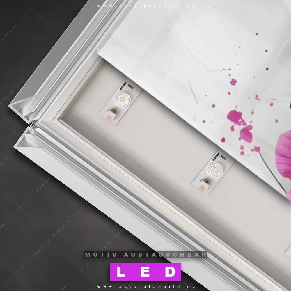 Bist du bereit, deine Wände mit einem dimmbaren LED Bild mit Fernbedienung und optionaler Farbtemperatursteuerung auf das nächste Level zu bringen? Unser Blumen - Botanik, Landschaften Canvalight® DIA LED Acrylglasbild ist genau das, was du brauchst! Das Wandbild mit LED Beleuchtung im Schmalen Format mit austauschbarer bedruckter Acrylglas-Scheibe Zarte Mohnblumen im Wind bringt Licht und Stil in dein Zuhause – und das in null Komma nichts!
