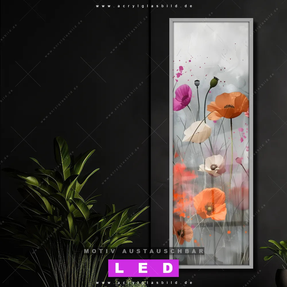 LED Acrylglasbild Canvalight® DIA | Zarte Mohnblumen im Wind | Schmal