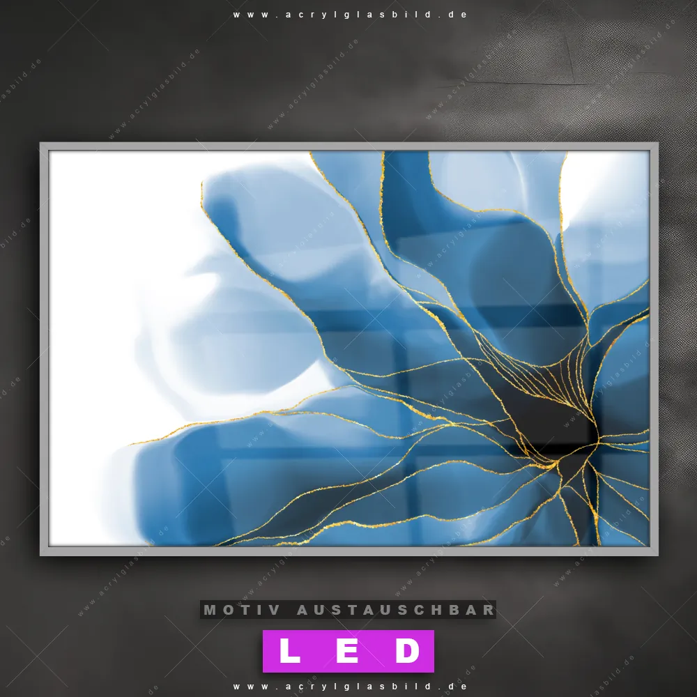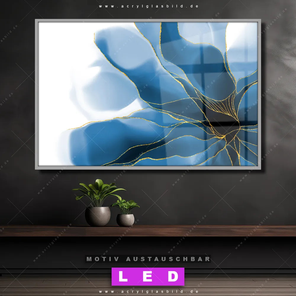 Mit unserem LED Acrylglasbild Canvalight® DIA blaue-weiße Blüte mit goldenen Akzenten und seiner genialen LED-Ausleuchtung wirst du nie wieder im Dunkeln auf deinem Sofa herumtappen. Wenn du nach einem beleuchteten Wandbild aus Acrylglas mit Blume, Botanik, Pflanze, Natur, Aquarell, Wasserfarbe für Arzt - Praxis, Büro - Kanzlei, Wohnzimmer - Schlafzimmer, Friseur - Beauty, Küche - Esszimmer suchst, ist unser LED Leuchtbild Blütenausschnitt in den beeindruckenden Motiv-Farben Weiss, Blau genau das richtige beleuchtete Wandbild für dich. Gestaltet im Modern Art, Abstrakt Stil, passt dieses LED Wandbild mit DIA-Klapprahmen und glänzender Front aus Acrylglas perfekt zu jedem Einrichtungsstil – sogar zu deinem chaotischen kreativen Durcheinander!