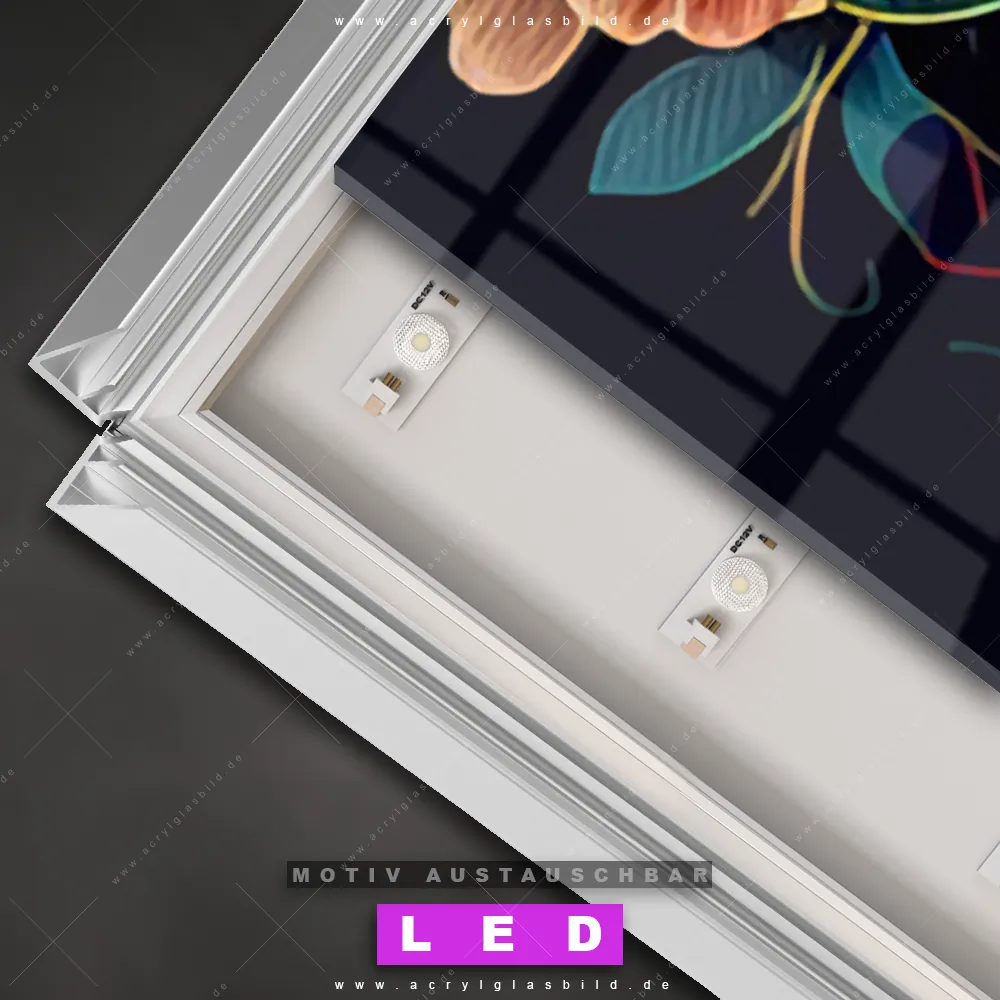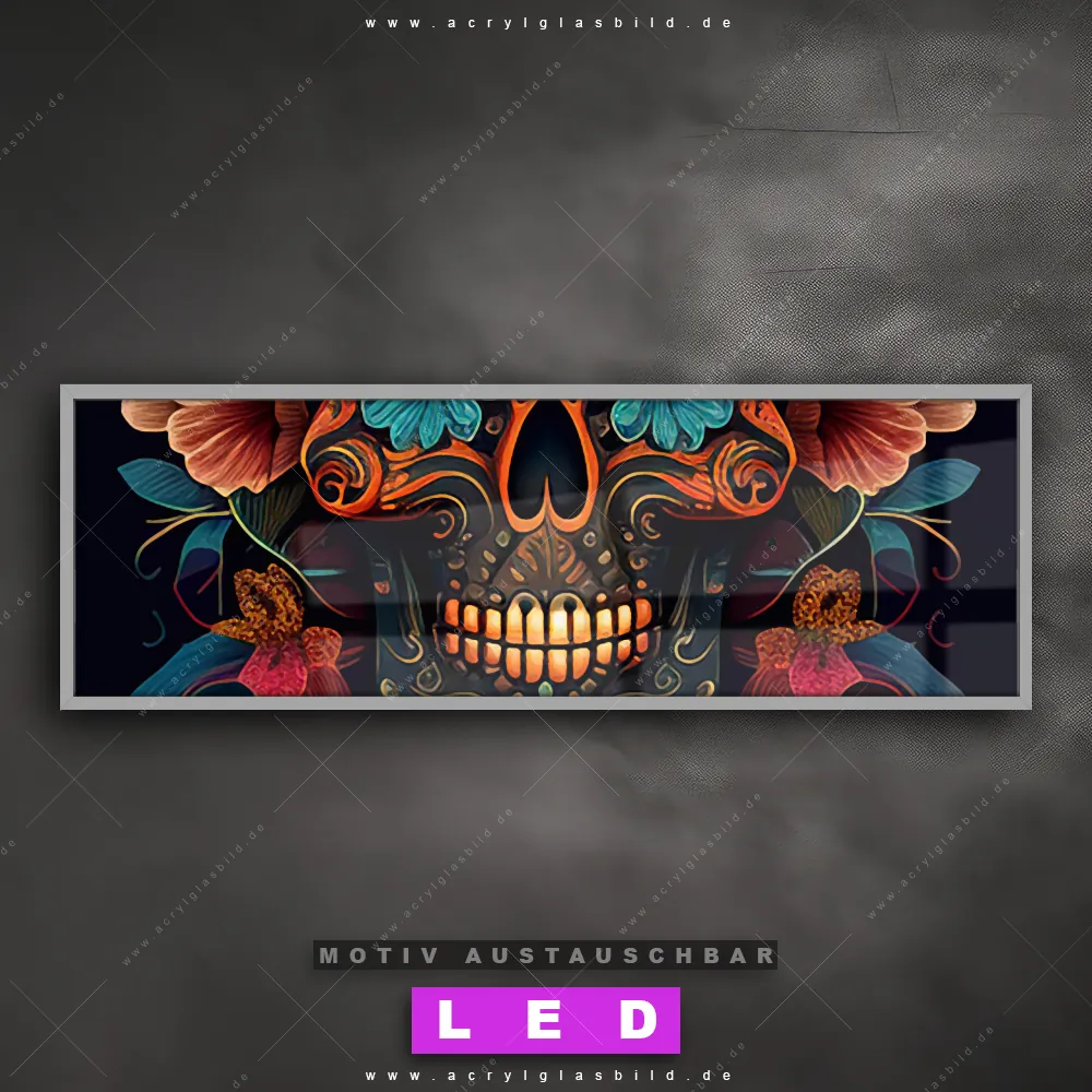 Also, worauf wartest du noch? Verwandle deine Wände mit einem LED Leuchtbild in wahre Kunstwerke und bestelle jetzt das Canvalight® DIA LED Acrylglasbild Schädel mit Blumen und Verzierungen. Deine Wände werden strahlen, und deine Freunde werden dank der wechselbaren Motive staunen!