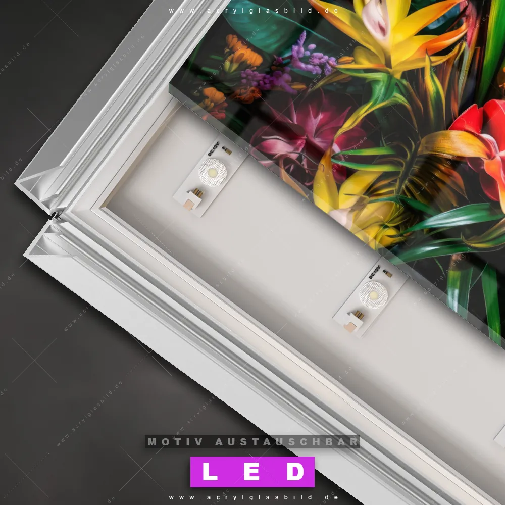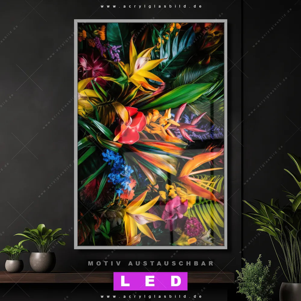 Du suchst nach einem Wandbild mit LED Beleuchtung als ultimativen Hingucker für deine Wände? Dann haben wir das perfekte dimmbare LED Bild mit Fernbedienung und optionaler Farbtemperatursteuerung für dich: unser abgefahrenes Blumen - Botanik Canvalight® DIA LED Acrylglasbild! Mit dem LED Leuchtbild aus Acrylglas Exotische tropische Pflanzen im Hochformat mit austauschbarer bedruckter Acrylglas-Scheibe bringst du nicht nur Licht, sondern auch ordentlich Stil in deine Bude.