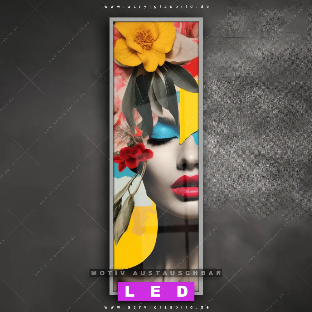 LED Acrylglasbild Canvalight® DIA | Florales Frauenporträt - Fiona | Schmal