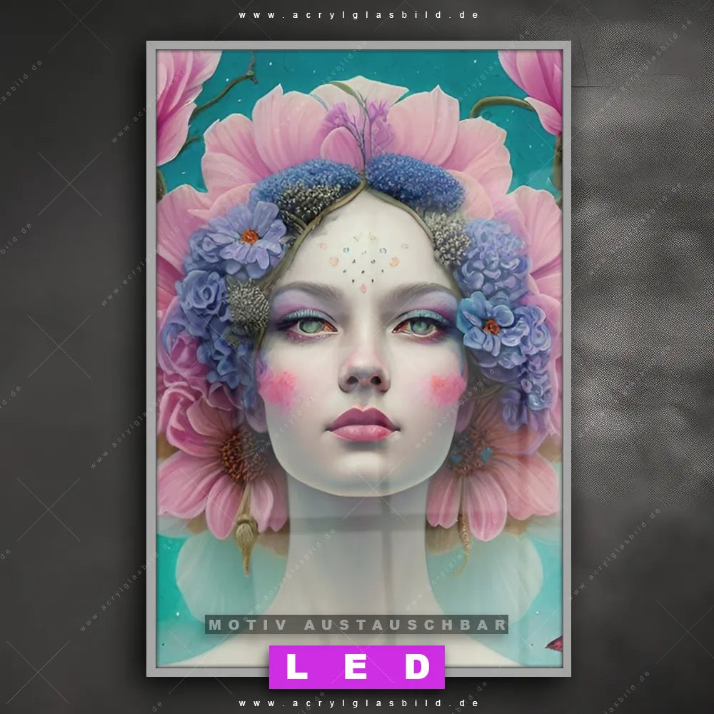 LED Acrylglasbild Canvalight® DIA | Florales Frauenporträt - Miona | Hochformat
