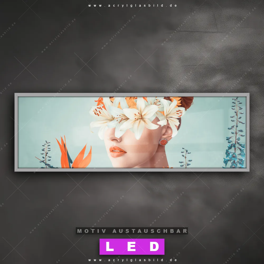 LED Acrylglasbild Canvalight® DIA | Florales Frauenporträt - Viola | Panorama