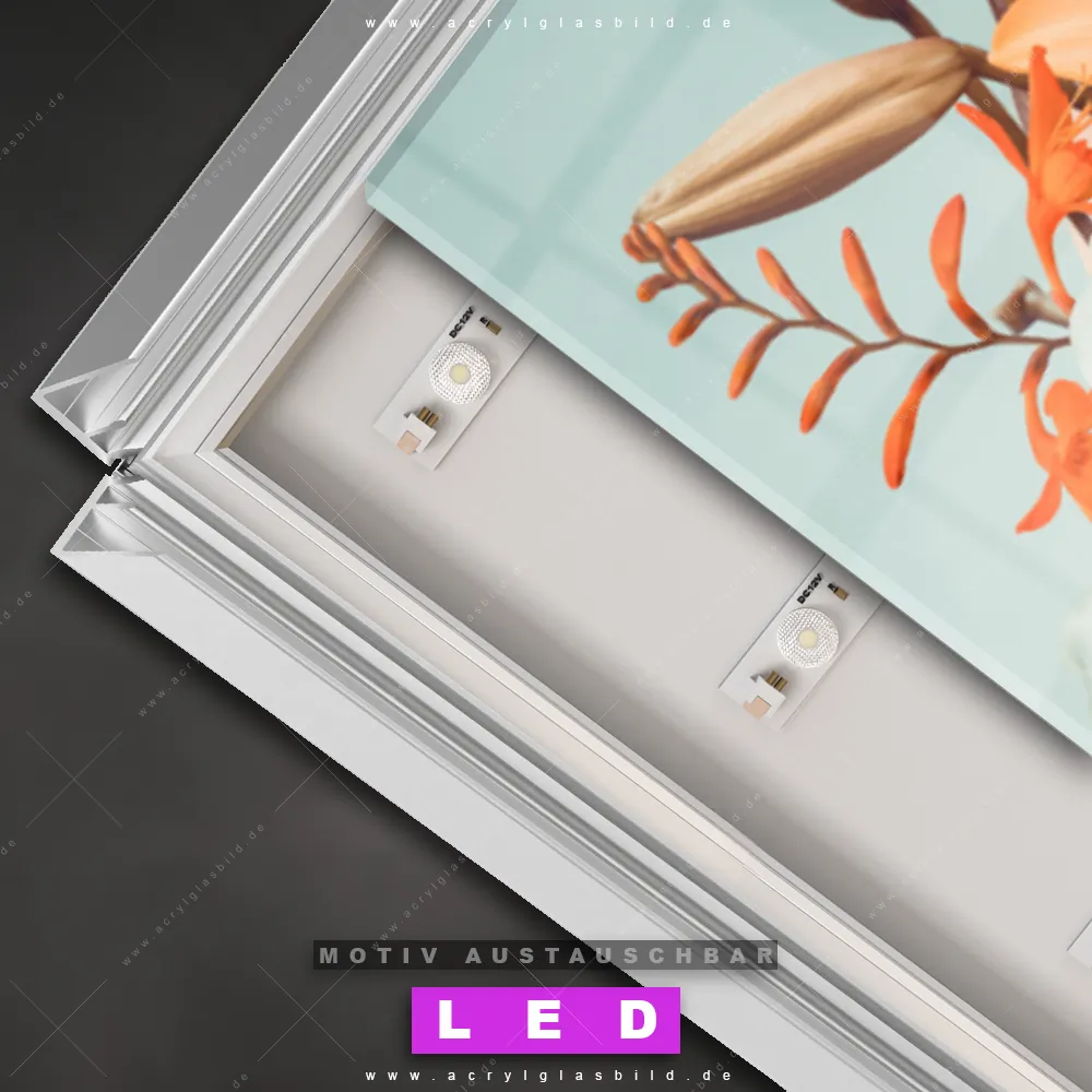 Also, warum noch zögern? Mach deine Wände mit einem Leuchtbild zum absoluten Hingucker und bestelle jetzt das Canvalight® DIA LED Acrylglasbild Blumen im Haar einer Frau. Deine Wände werden leuchten, und deine Freunde werden dank der wechselbaren Motive beeindruckt sein!