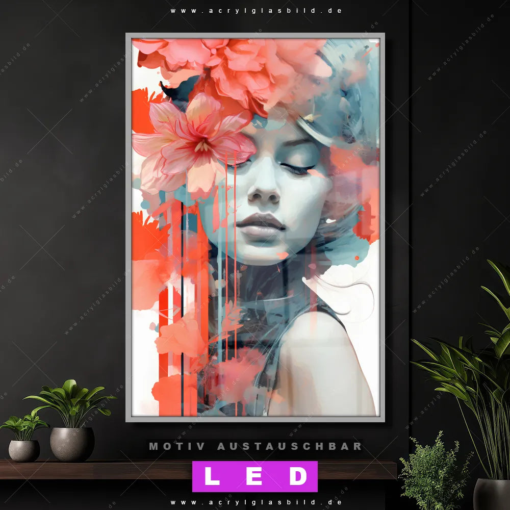 LED Acrylglasbild Canvalight® DIA | Jolanda - Frau mit Blumen im Haar | Hochformat