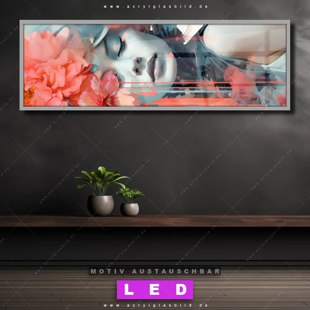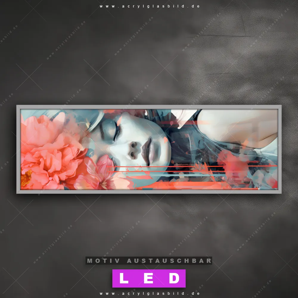 LED Acrylglasbild Canvalight® DIA | Jolanda - Frau mit Blumen im Haar | Panorama