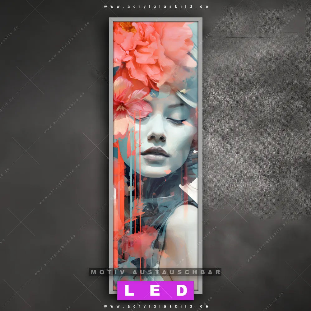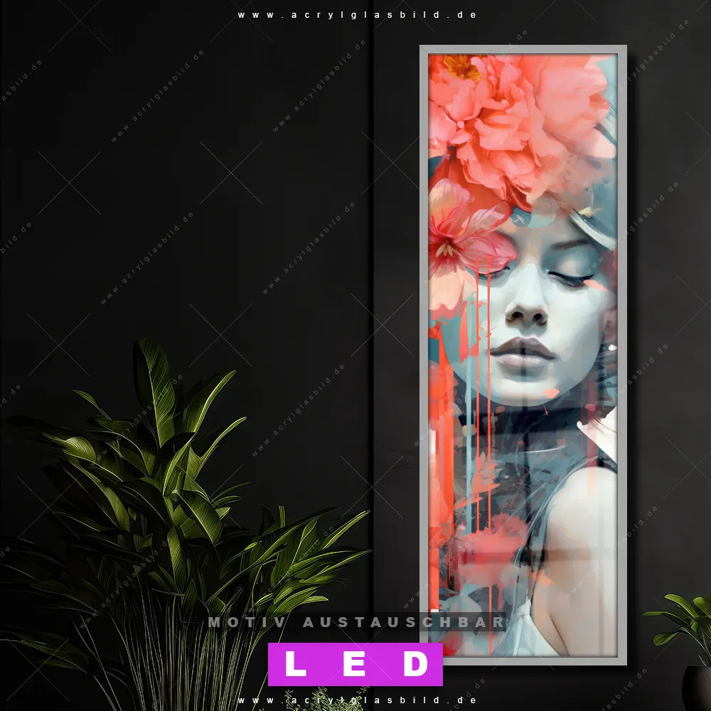 LED Acrylglasbild Canvalight® DIA | Jolanda - Frau mit Blumen im Haar | Schmal